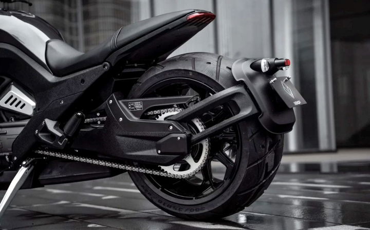 Hablando de neumáticos, detrás tiene un auténtico rodillo de 300 mm de ancho, un poco exagerado teniendo en cuenta que una Ducati Diavel V4 lleva neumáticos de 240. Y aun así, es 10 mm más estrecho que la rueda trasera que lleva la LFC700 normal.