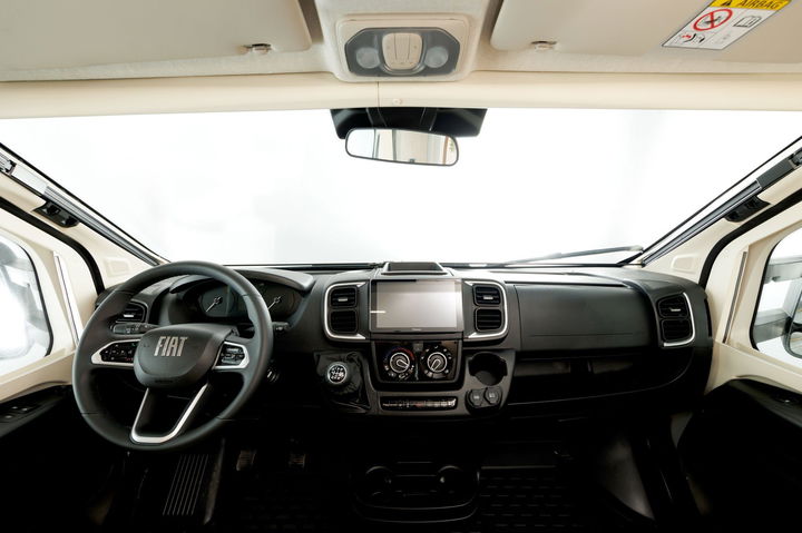 La base elegida para la Benimar Mileo 297 es ya conocida. Se trata de la última evolución de la Fiat Ducato que ya en su octava entrega cuenta con todo lo necesario para viajar de manera cómoda. De serie lleva el motor diésel de 140 CV pero opcionalmente se puede añadir un más apropiado bloque con 180 CV en combinación con una transmisión automática de ocho velocidades.