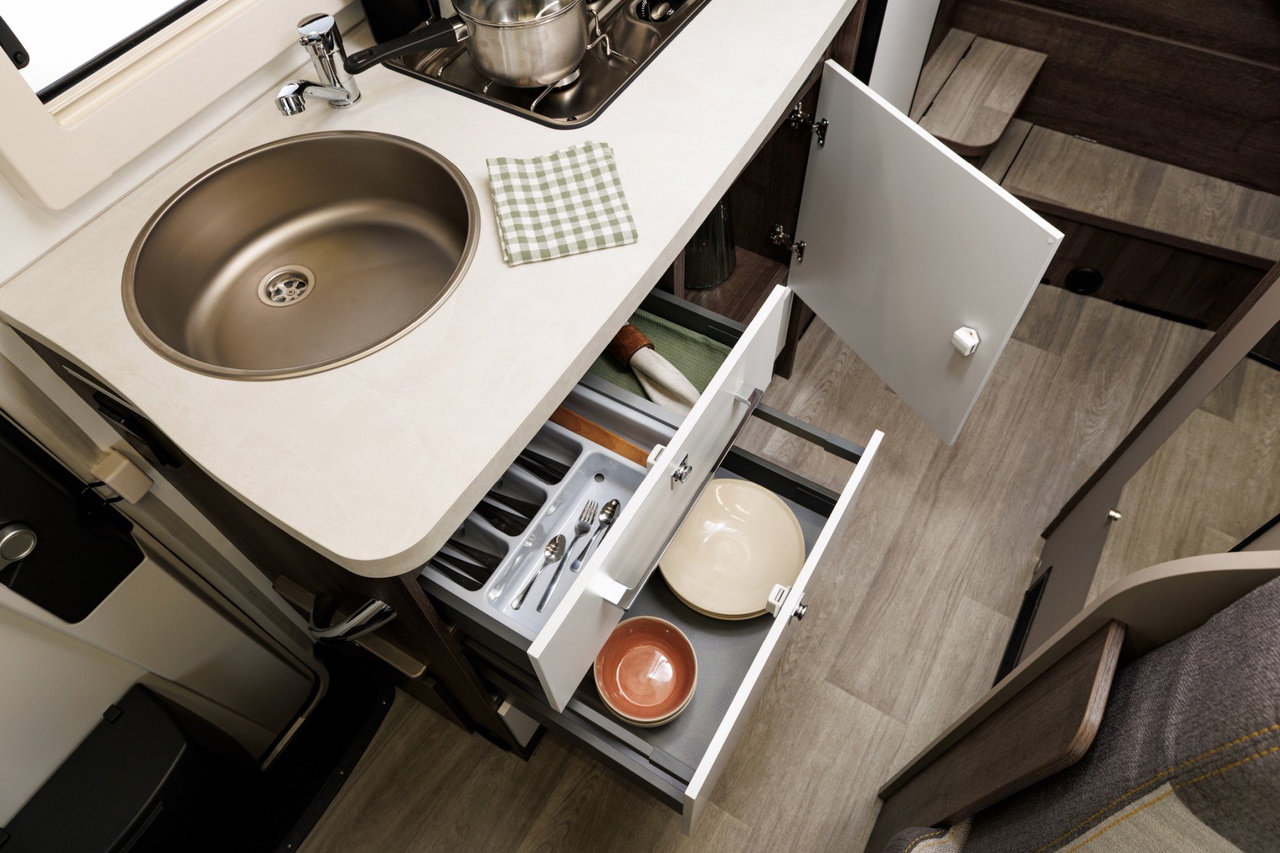 Es cierto que la Benimar Tessoro 440 Up no es una autocaravana compacta en anchura y tiene el problema habitual de las perfiladas que con 2,35 metros de ancho puede no resultar muy manejable en caminos o calles angostas. Para lo demás son de agradecer esos centímetros extra que dan una sensación de desahogo muy superior en cocina y baño sobre todo.