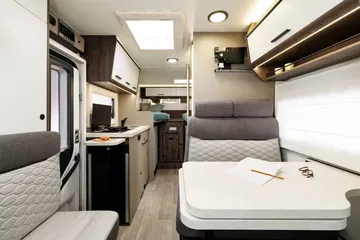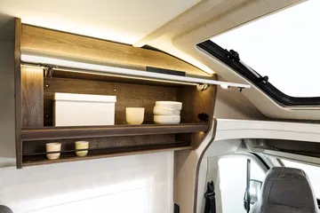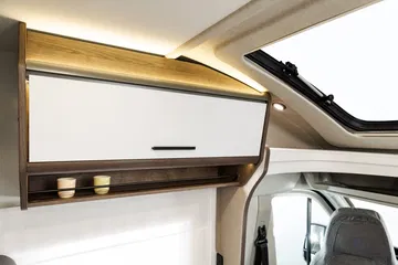 Entre las muchas opciones que se pueden añadir están la televisión, placa solar, llantas de aleación, carrocería de cabina en color gris oscuro, batería de gel o litio, faros bi-xenón con luz diurna LED, neumáticos cuatro estaciones, control de crucero adaptativo, navegador integrado, peldaño de acceso aislado, depósito de aguas grises calefactado, aislante de parabrisas, etc.