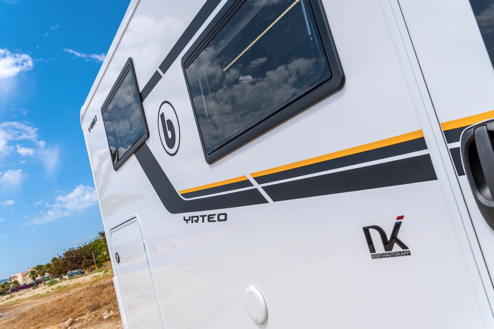 - Yrteo 840: Es la más pequeña y manejable, mide apenas 5,99 metros de longitud y cuenta con una cama transversal posterior. Podría ser la mejor alternativa a las campers de seis metros por dimensiones, pero presumiendo de un baño algo más espacioso (variable) y una cocina de mayores dimensiones. El salón también cuenta con buen espacio y bajo la cama trasera es posible guardar bicicletas y muchos otros objetos.