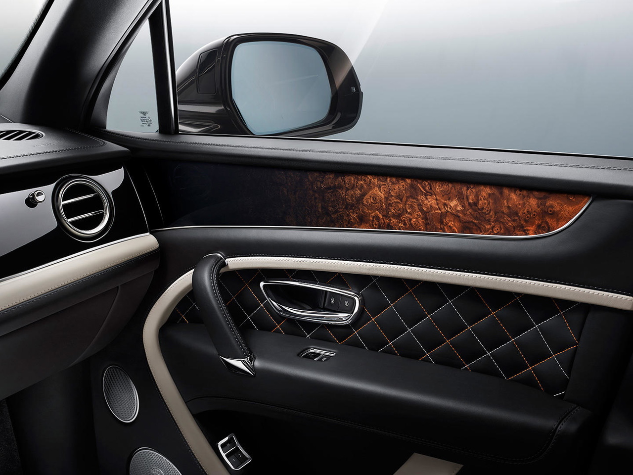 Bentley ofrecerá una gama de acabados interiores con tapizados de piel con las costuras visibles y una combinación de materiales tan exquisita como la que se aprecia en estas imágenes, con aluminio, piel y madera.