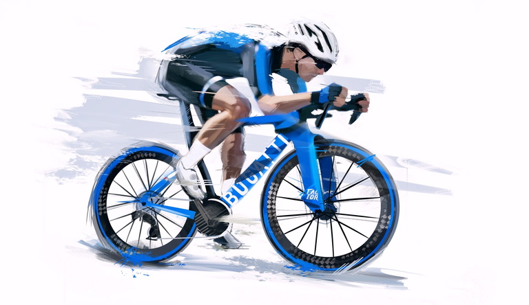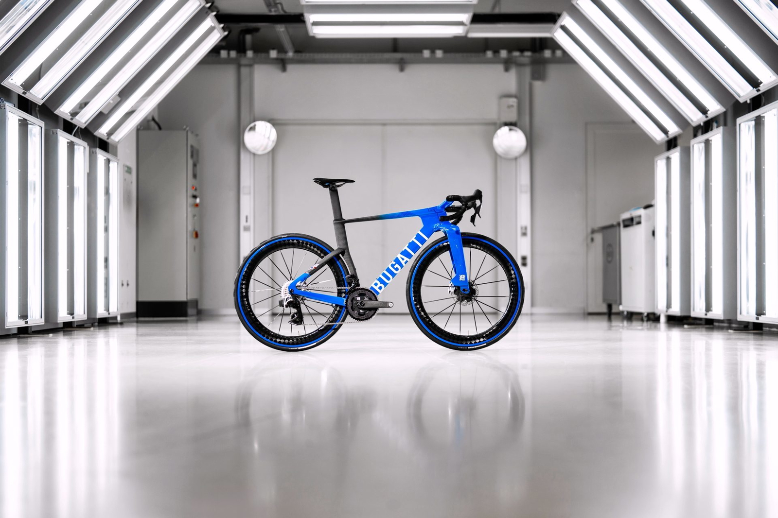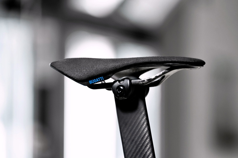 Los neumáticos (Continental Grand Prix 5000 TT) están personalizados con el diseño gráfico clásico de Bugatti, igual que el cuadro de la bicicleta, con flancos en azul. No obstante, los colores se pueden personalizar para que combinen con el Bugatti (coche) de cada cliente. Y los sillines de carbono están revestidos con el mismo material (Alcantara) utilizado en los interiores de los Bugatti de cuatro ruedas.