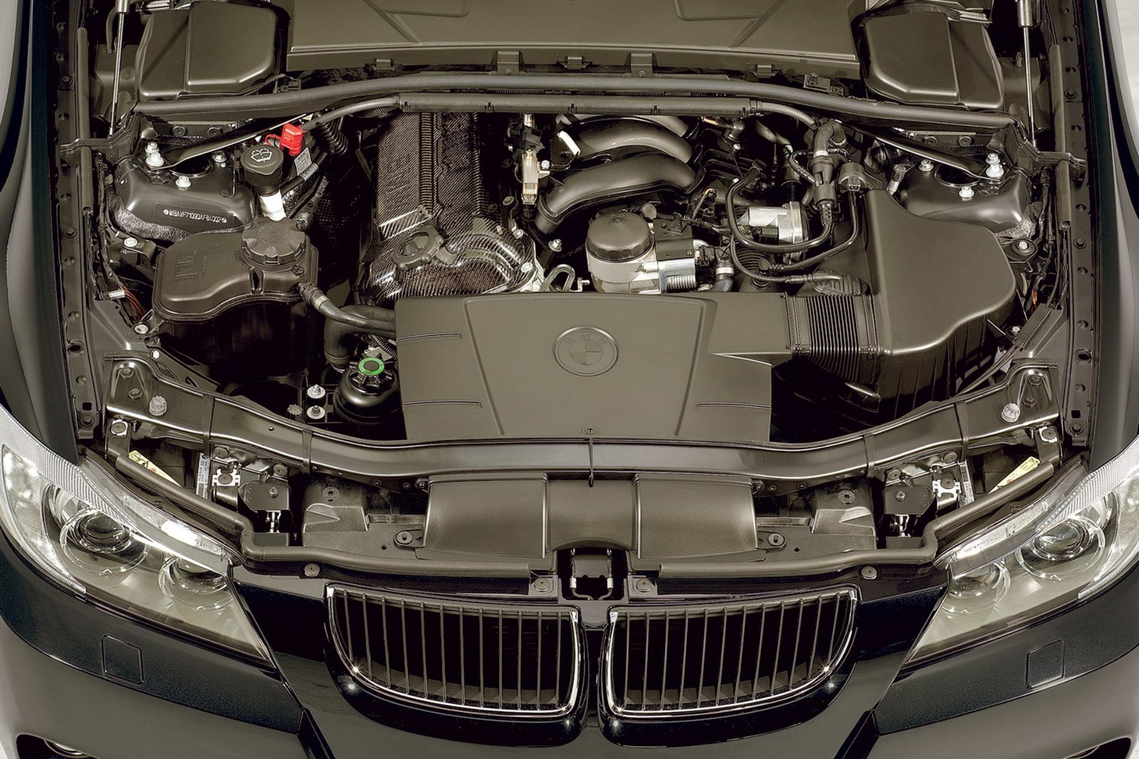 Lo realmente llamativo del 320si, está bajo su capó, y queda claro nada más abrirlo y dejar que la luz bañe la parte superior del motor, pues la tapa de balancines está acabada en una golosa fibra de carbono. Se trata de un propulsor denominado internamente como N45B20S, muy convencional, en términos de números. Tiene cuatro cilindros, 2 litros de capacidad y entrega sólo 173 CV de potencia porque no está turboalimentado.