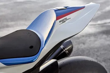 Además el carenado de la BMW HP4 Race también es de fibra de carbono, así como el apoyo del sillín y el guardabarros delantero.