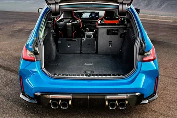 En el interior la pauta la marca la practicidad que aportan sus 500 litros de volumen de maletero. No obstante, elementos como los mencionados asientos de tan radical apariencia, el volante M Alcantara con marca central roja, las molduras interiores en fibra de carbono y la insignia «CS» en la consola central, nos recordarán de manera constante que estamos ante algo más que un familar, mientras que la vertiente tecnológica la protagoniza el sistema BMW iDrive con pantalla curva de 12,3 y 14,9 pulgadas, incluyendo la configuración M Drive Professional, que permite ajustar los modos de conducción y el control de tracción en diez niveles.