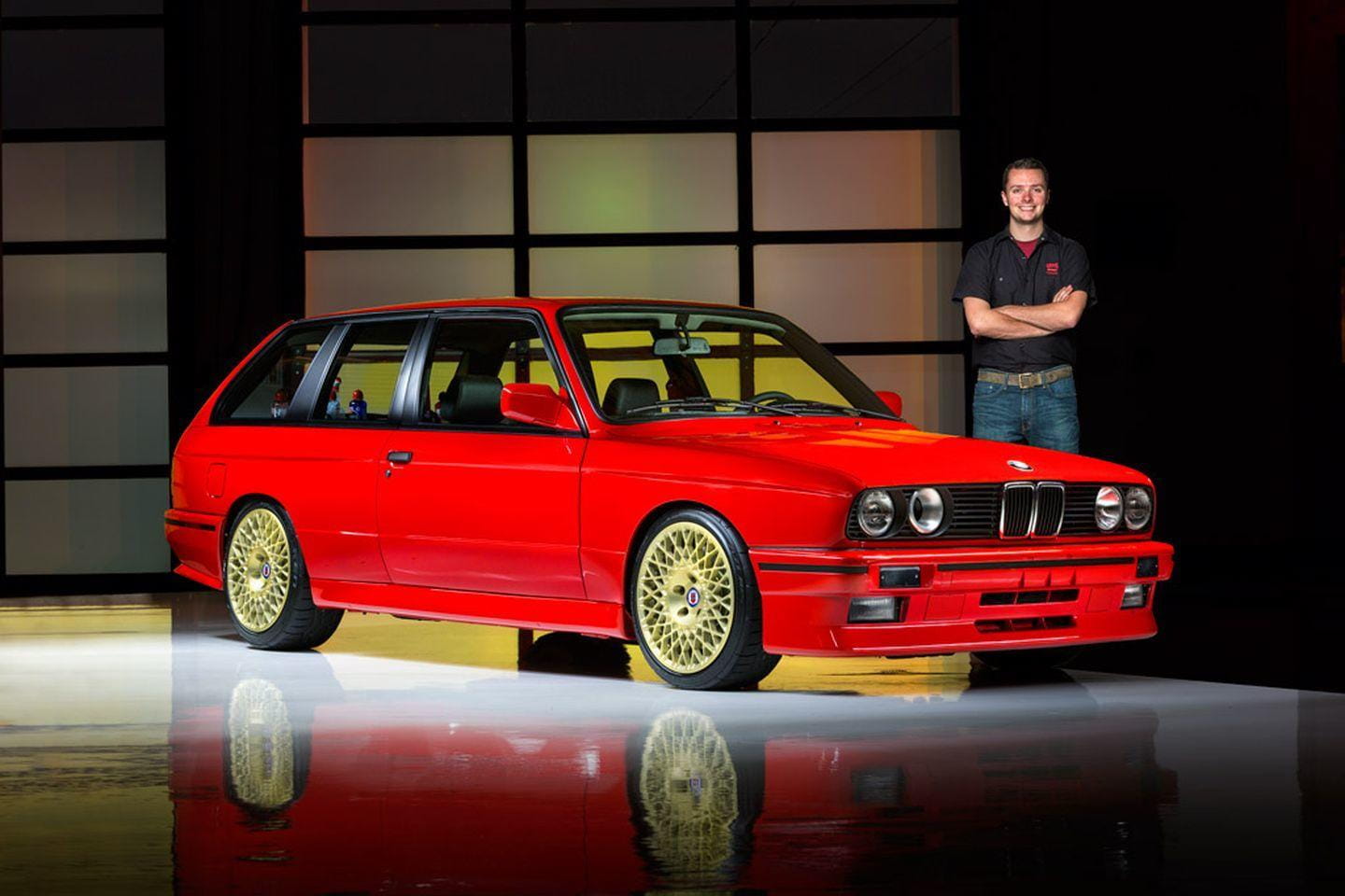Antes de que alguien se lleve las manos a la cabeza, este BMW no es realmente un M3 E30. Ha sido construido usando como base un BMW Serie 3 Touring del año 1988, al que se le han suprimido las dos puertas traseras e instalado las largas puertas de un Serie 3 Coupé de la época. Sí se le ha instalado un kit de carrocería ensanchado que imita el aspecto del BMW M3 E30, uno de los más codiciados BMW de los años ochenta. A su aspecto limpio contribuyen unas preciosas llantas HRE 501M de 17 pulgadas pintadas en color dorado.