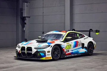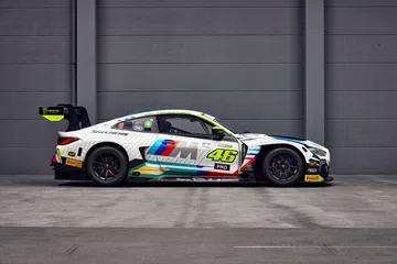 Este es el M4 GT3 con el que el equipo WRT compitió en 2023 y 2024 (y en las 12 Horas de Bathurst de 2025), el chasis 22-016 que pilotó el mismísimo Valentino Rossi. El nueve veces campeón del mundo en motos decidió dar el salto a las cuatro ruedas y no le fue mal, pues consiguió dos victorias: en Le Mans Cup GT3 en 2023 y en Misano, en el Mundial GT de 2024.