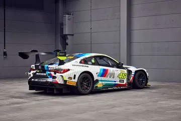 Este es el M4 GT3 con el que el equipo WRT compitió en 2023 y 2024 (y en las 12 Horas de Bathurst de 2025), el chasis 22-016 que pilotó el mismísimo Valentino Rossi. El nueve veces campeón del mundo en motos decidió dar el salto a las cuatro ruedas y no le fue mal, pues consiguió dos victorias: en Le Mans Cup GT3 en 2023 y en Misano, en el Mundial GT de 2024.