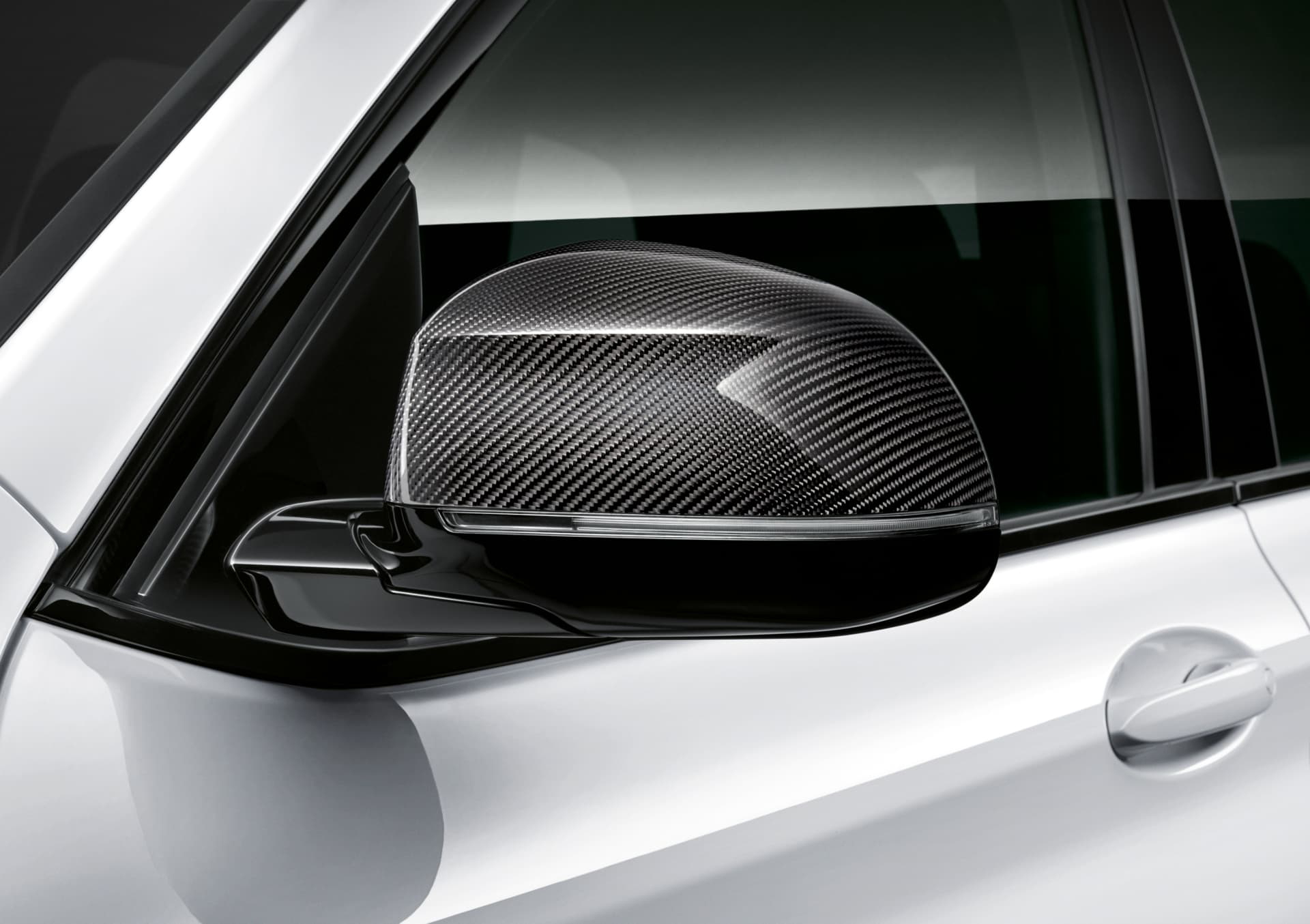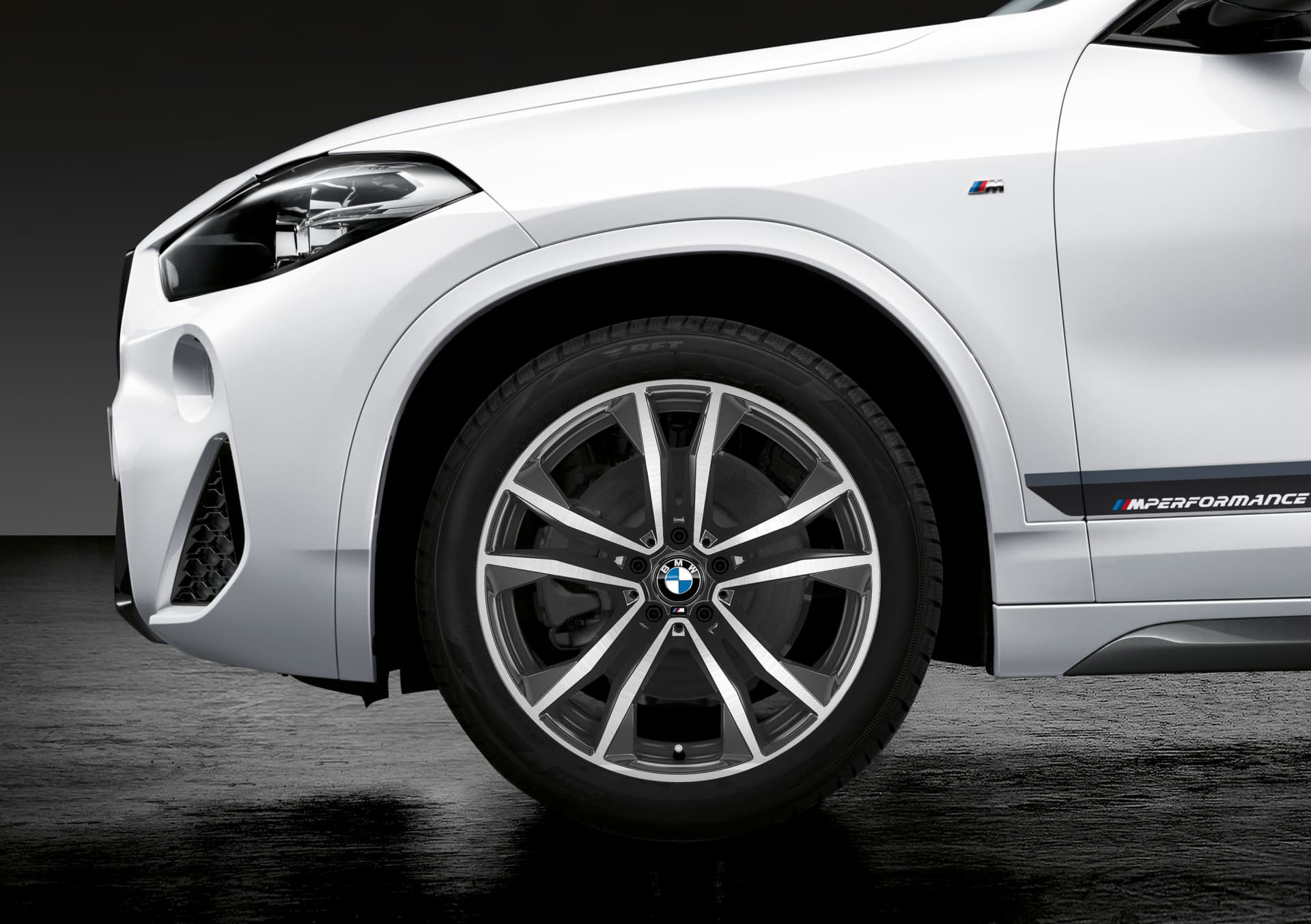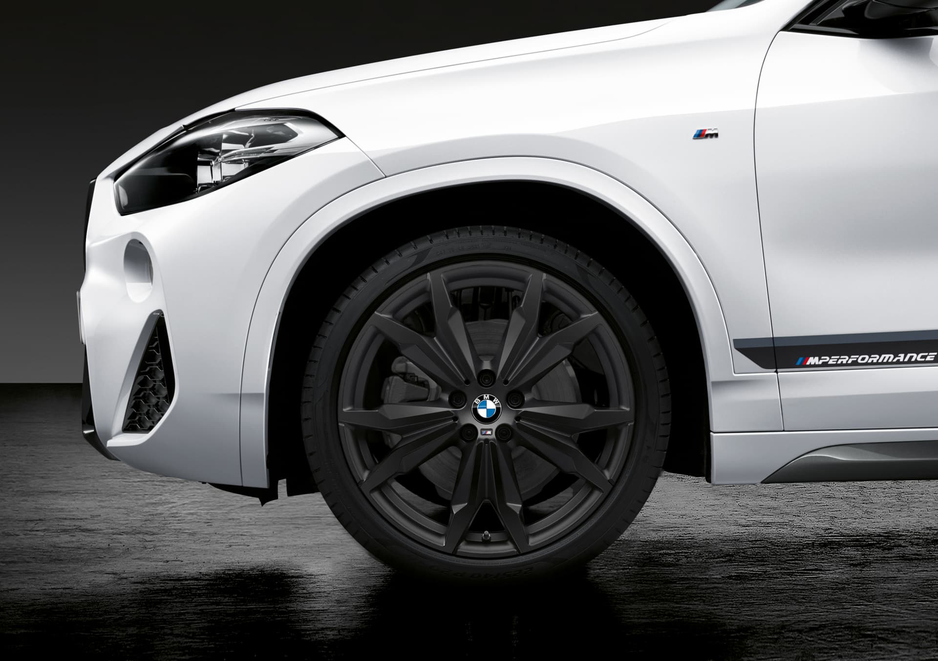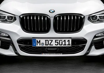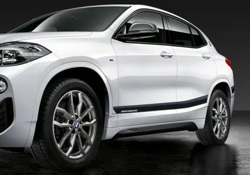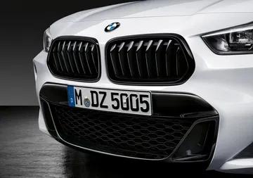 En el exterior, la propuesta de M Performance pasa por ofrecer una serie de accesorios que no sólo visten a los X2, X3 y X4 de manera más deportiva sino que los dota de una apariencia un tanto más oscura. Prueba de ello es la parrilla frontal -el doble riñón no cambia de geometría pero se tiñe de negro- y la entrada de aire justo debajo de aquella, las molduras laterales en negro o los retrovisores, que están hechos de plástico reforzado con fibra de carbono (CFRP), a lo que se une el marco de las ventanillas también en negro.