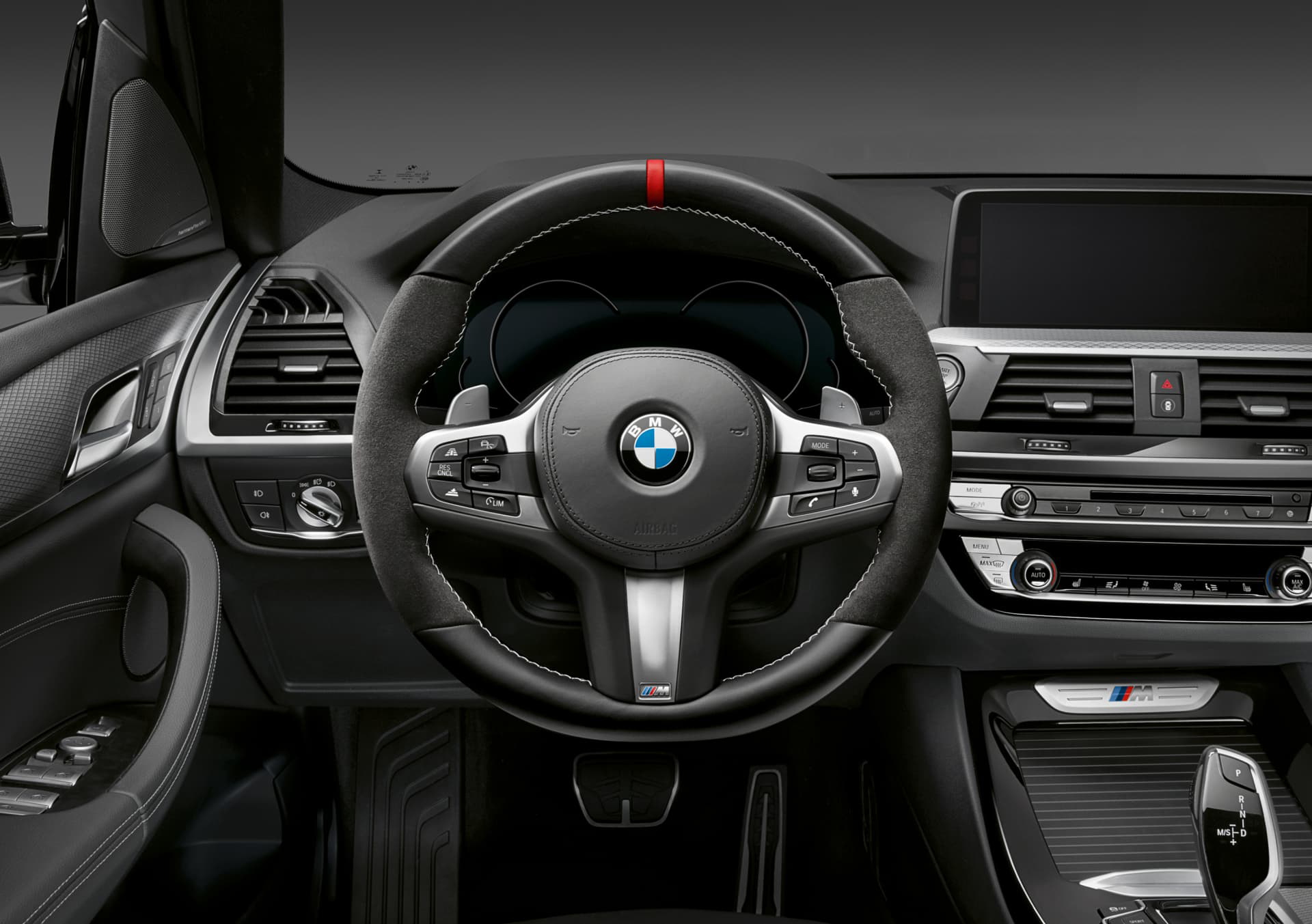 Empezando por el interior arriba ilustrado, estos tres modelos se ofrecen ahora con un equipamiento propio de todo un modelo M. Así lo atesoran las molduras interiores de fibra de carbono, el pedalier en acabado metálico o el volante en piel y Alcantara con costuras en contraste y franja roja a las 12. A este último no le faltan las levas para cambiar de marcha, que en los X3 y X4 pueden estar acabadas en fibra de carbono.