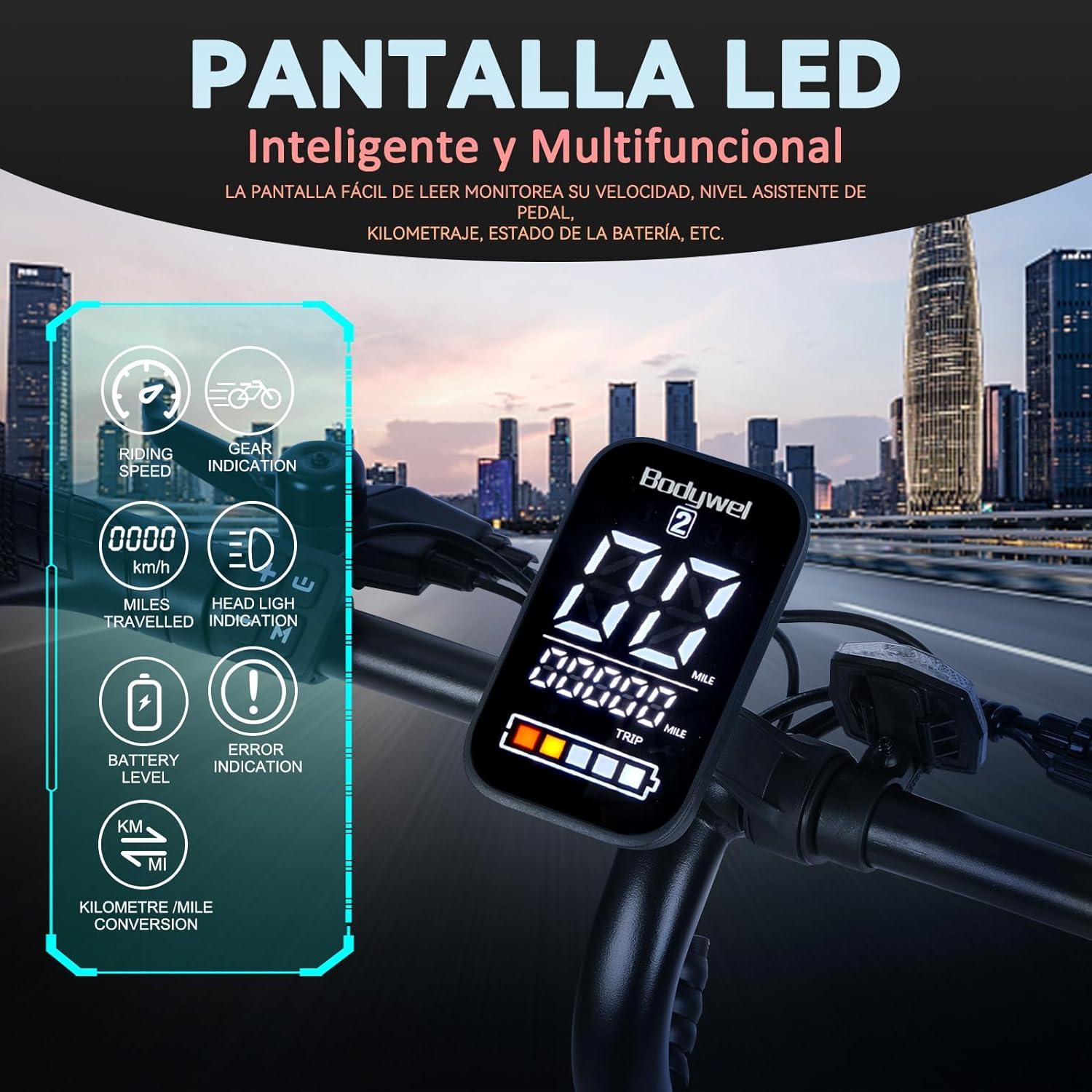 Ser capaz de almacenar fácilmente la ebike, además de poder usarla en diferentes modalidades de transporte, aporta una flexibilidad extremadamente valiosa. No solo es buena para moverse por la ciudad, sino que incluso podemos llevarla en el maletero si nos vamos de viaje. Ideal para aquellos que consideran utilizar la Bodywel T16 tanto para trayectos diarios al trabajo como para hacer recados.