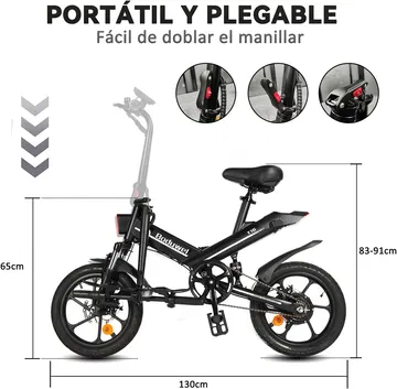 El diseño compacto y plegable de la Bodywel T16 es una de sus grandes virtudes. Esta característica la convierte en una compañera perfecta para los que residen en espacios pequeños o utilizan el transporte público con frecuencia (difícil determinar si es una ebike o una bicicleta plegable estándar). Es una alternativa plegable y pequeña a la ebike de Lidl, y también más barata. Su capacidad para plegarse facilita su transporte y almacenamiento, permitiéndoos llevarla en el coche o guardarla discretamente en casa o en una esquina de la oficina. Es ya pequeña de por sí, por lo que el plegado se reduce al manillar y al sillín.