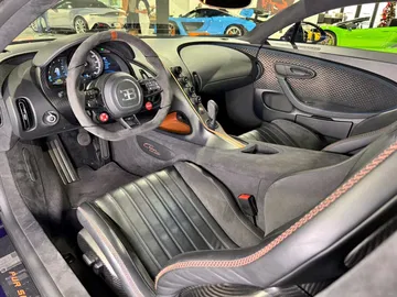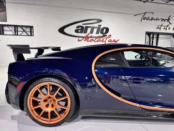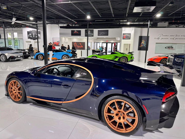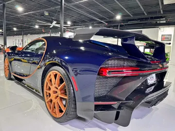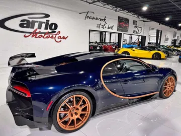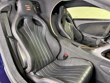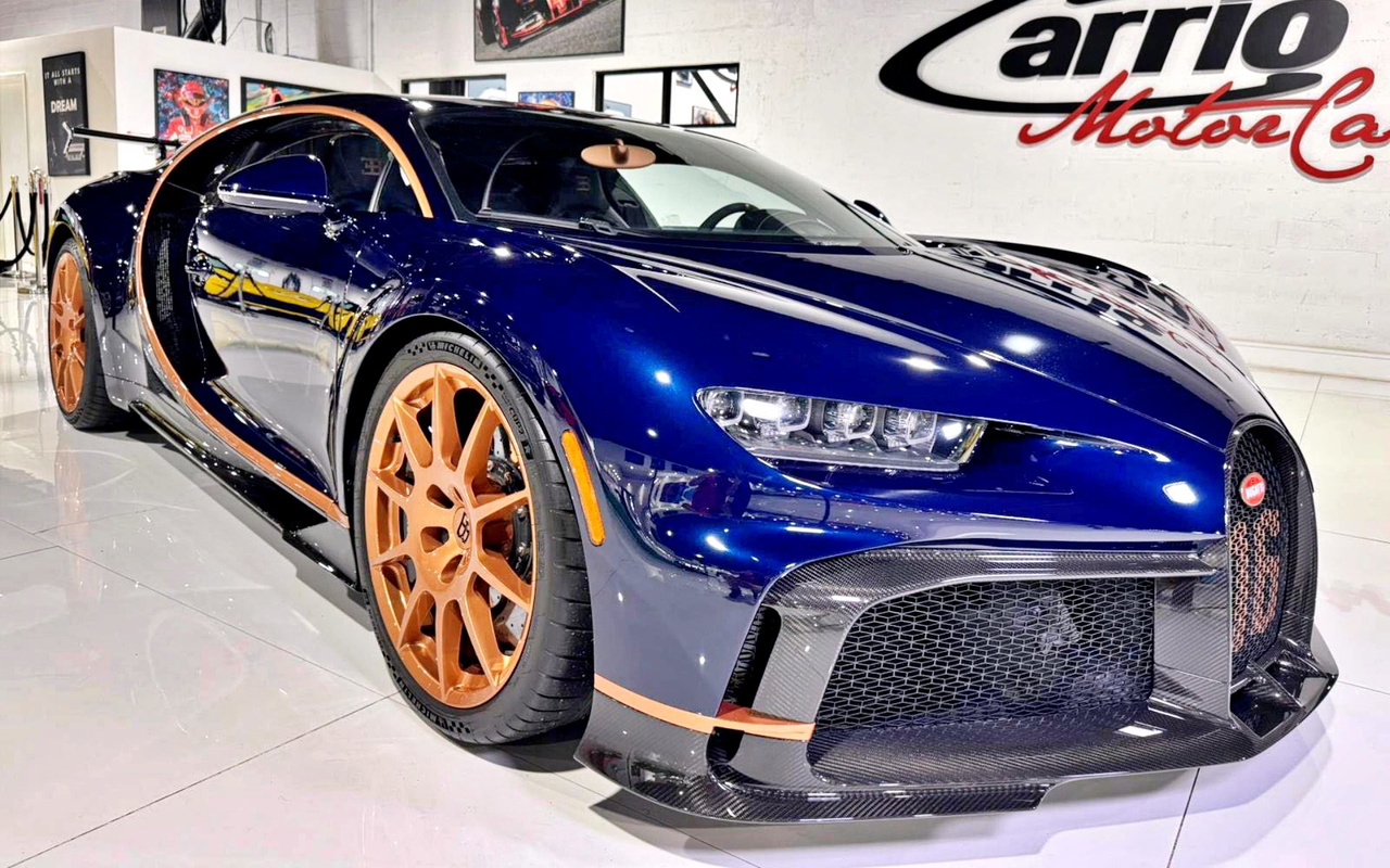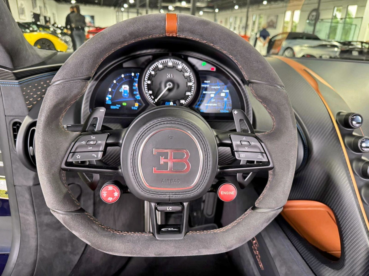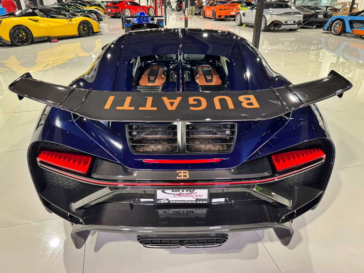 Esta unidad va pintada en Atlantic Blue con llantas doradas y detalles del mismo color a juego, como las letras BUGATTI del alerón trasero, las tapas del motor o la C que rodea las puertas. Como no podía ser de otra manera, lleva una ingente cantidad de fibra de carbono. Como curiosidad, este ejemplar en concreto fue el que Bugatti presentó al público en la Montery Car Week de 2021.