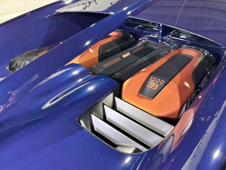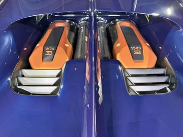 El motor es el mismo que lleva el Chiron estándar: un gigantesco W16 de 8.0 litros con cuatro turbos que entrega 1.496 CV (1.100 kW) y 1.600 Nm de par motor. Pero en esta versión se prioriza el rendimiento en circuito por encima de la velocidad punta, por eso la velocidad máxima está limitada electrónicamente a solamente 350 km/h.