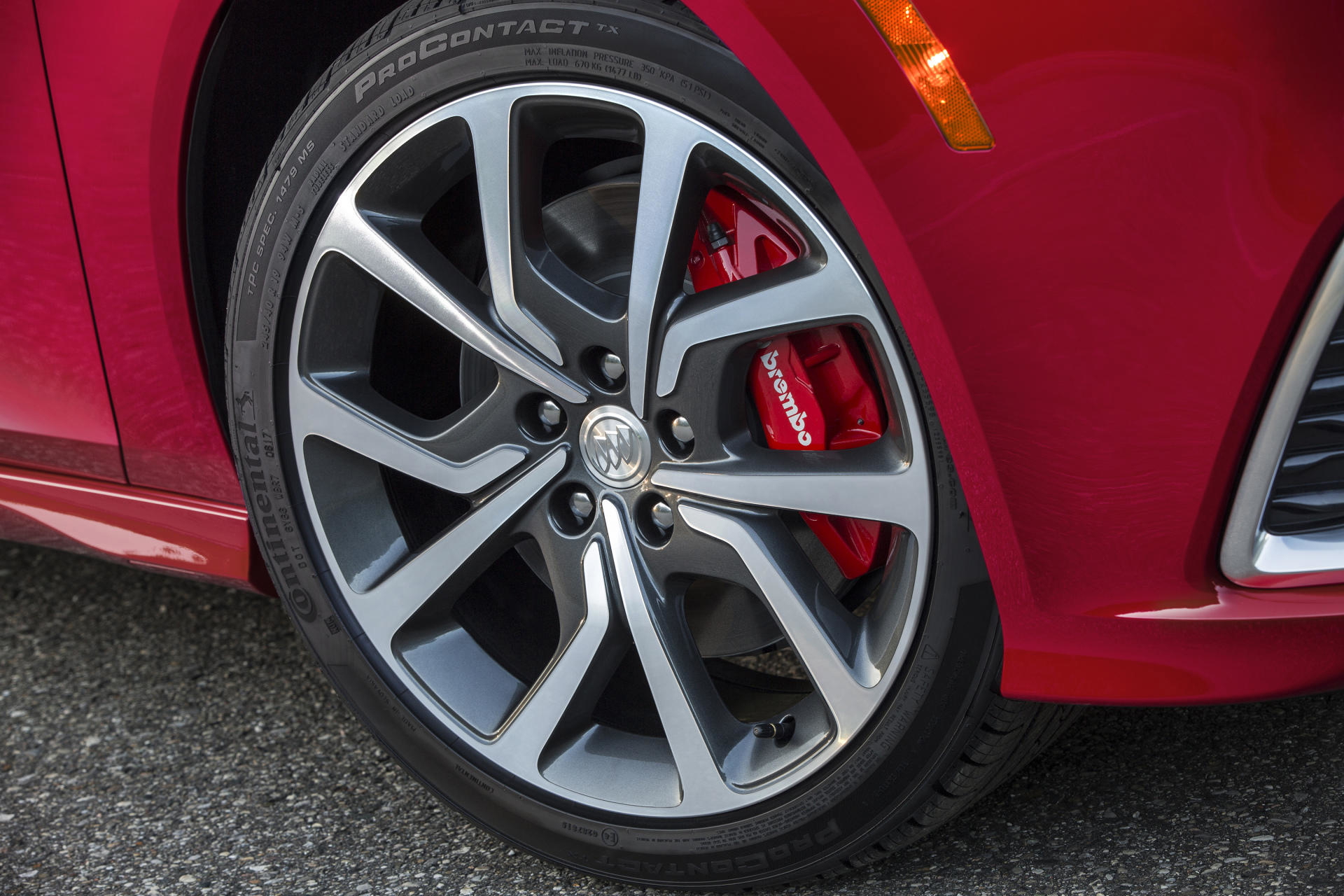Buick anuncia la introducción de un sistema de escape deportivo que imaginamos también está presente en el Opel, aunque evidentemente disponiendo de un V6 frente a un 4 cilindros la banda sonora será bien diferente. Lo que no cambia es la presencia de los frenos Brembo.