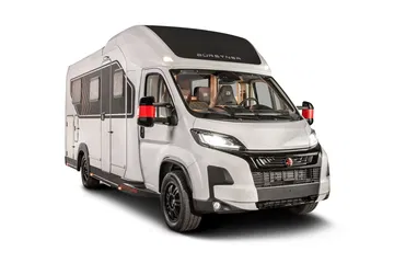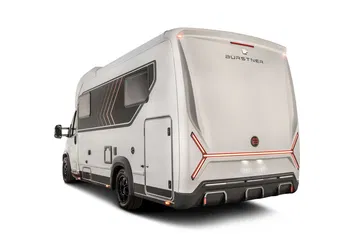 Exteriormente las formas de la Bürstner Signature nada tiene que ver con las perfiladas que solemos ver por la calle. Tomando como base de partida la última generación del Fiat Ducato, añade una zona posterior de formas redondeadas mucho más estilosa, acompañada según versiones o equipamiento de ventanas integradas, un enorme Skywiew frontal, doble puerta de acceso al garaje de grandes dimensiones, llantas de aleación de hasta 18 pulgadas, etc.