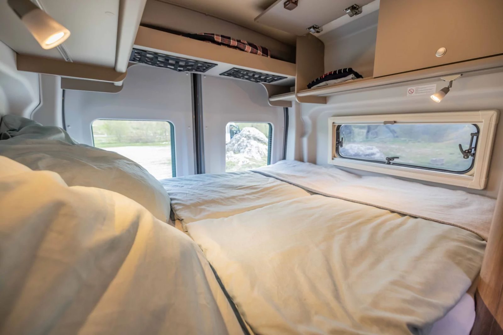 El equipamiento de serie incluye también la pintura metalizada, toldo de 3,5 metros en negro, llantas de aleación de 16 pulgadas, ventanas integradas, oscurecedores de cabina, mosquiteras y oscurecedores en ventanas y puerta lateral, booster de carga, luz led exterior, escalón de entrada eléctrico, batería vivienda AGM de 95 Ah, conexión exterior CEE para 230 v, asientos giratorios, etc.