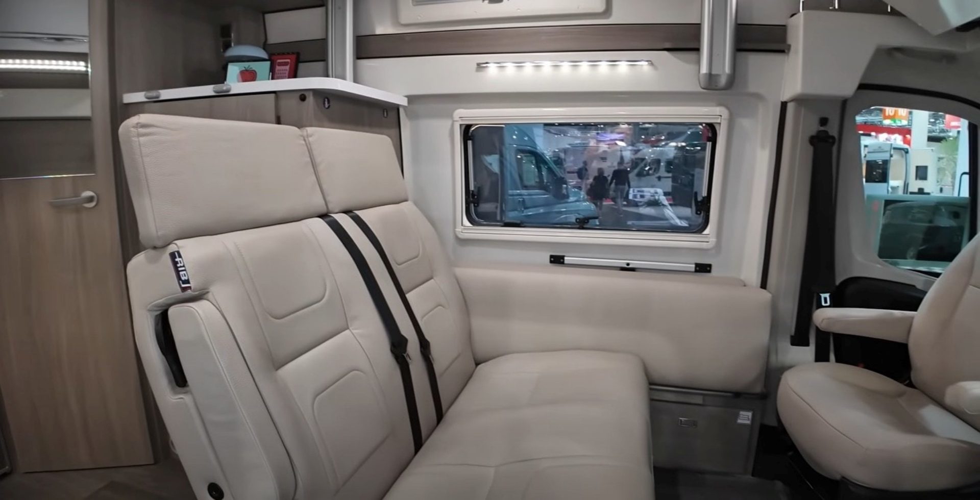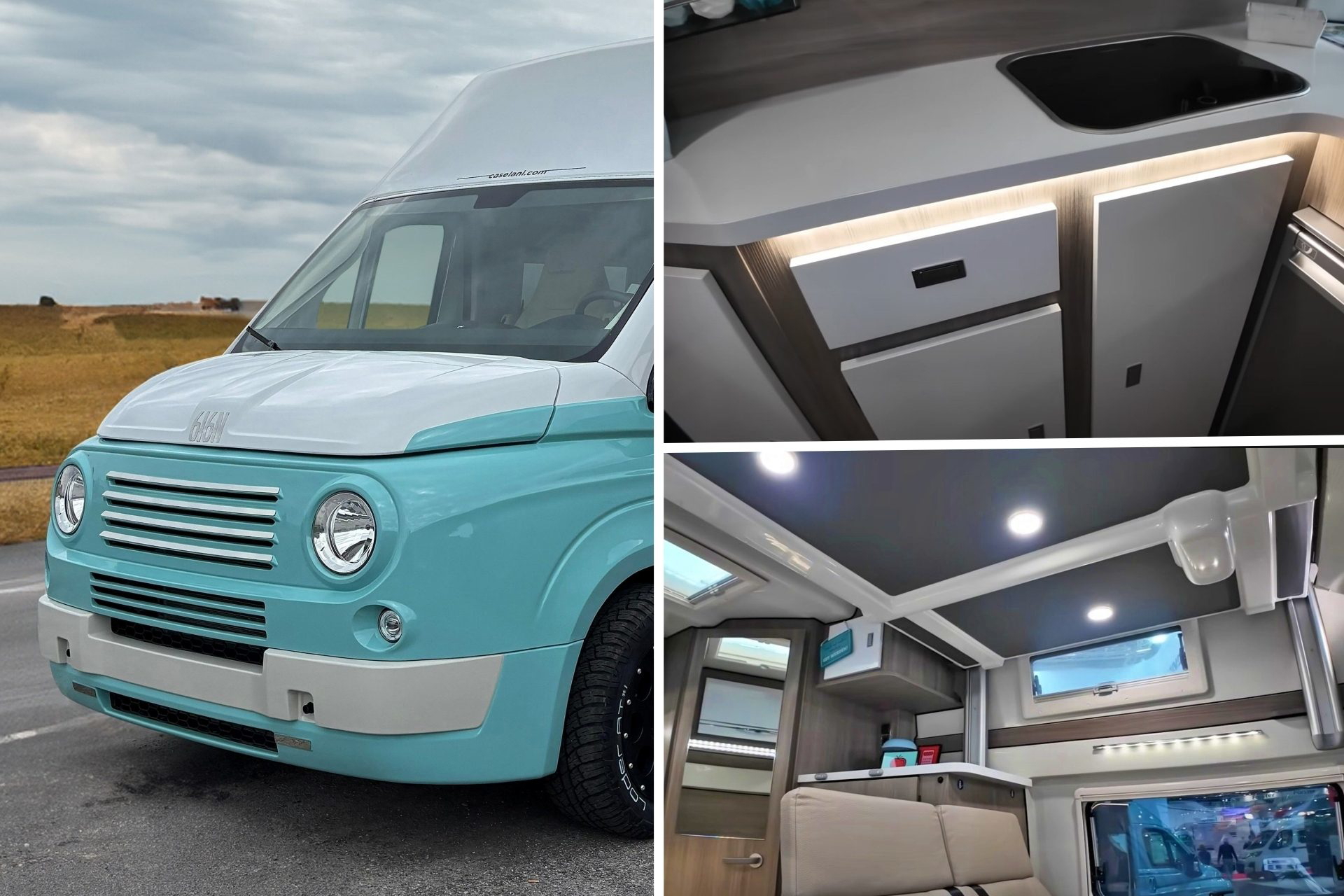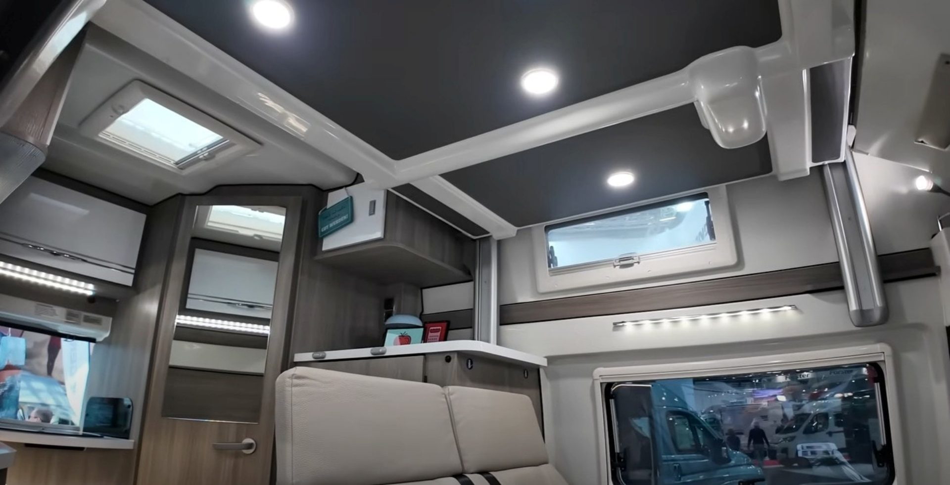 El interior encontramos el habitual despliegue de medios en una camper de 2025. Disponible tanto en versión autocaravana (denominada Motorhome), como en versión furgón (Camper Van) de carrocería larga o corta con techo elevable o fijo, encontramos línea modernas que evocan minimalismo y un espacio que dependerá de la variante elegida.