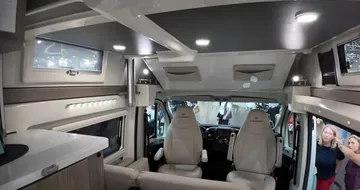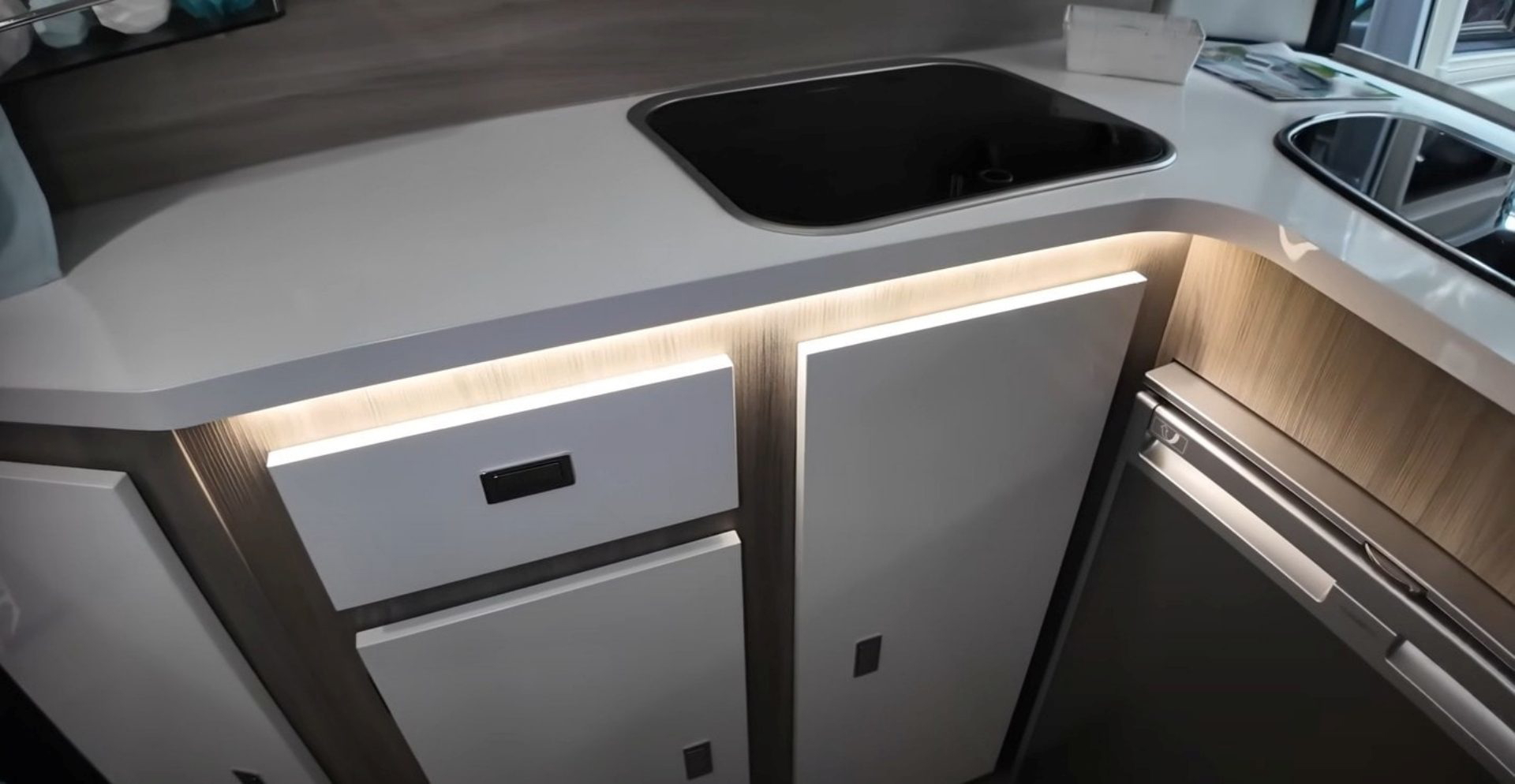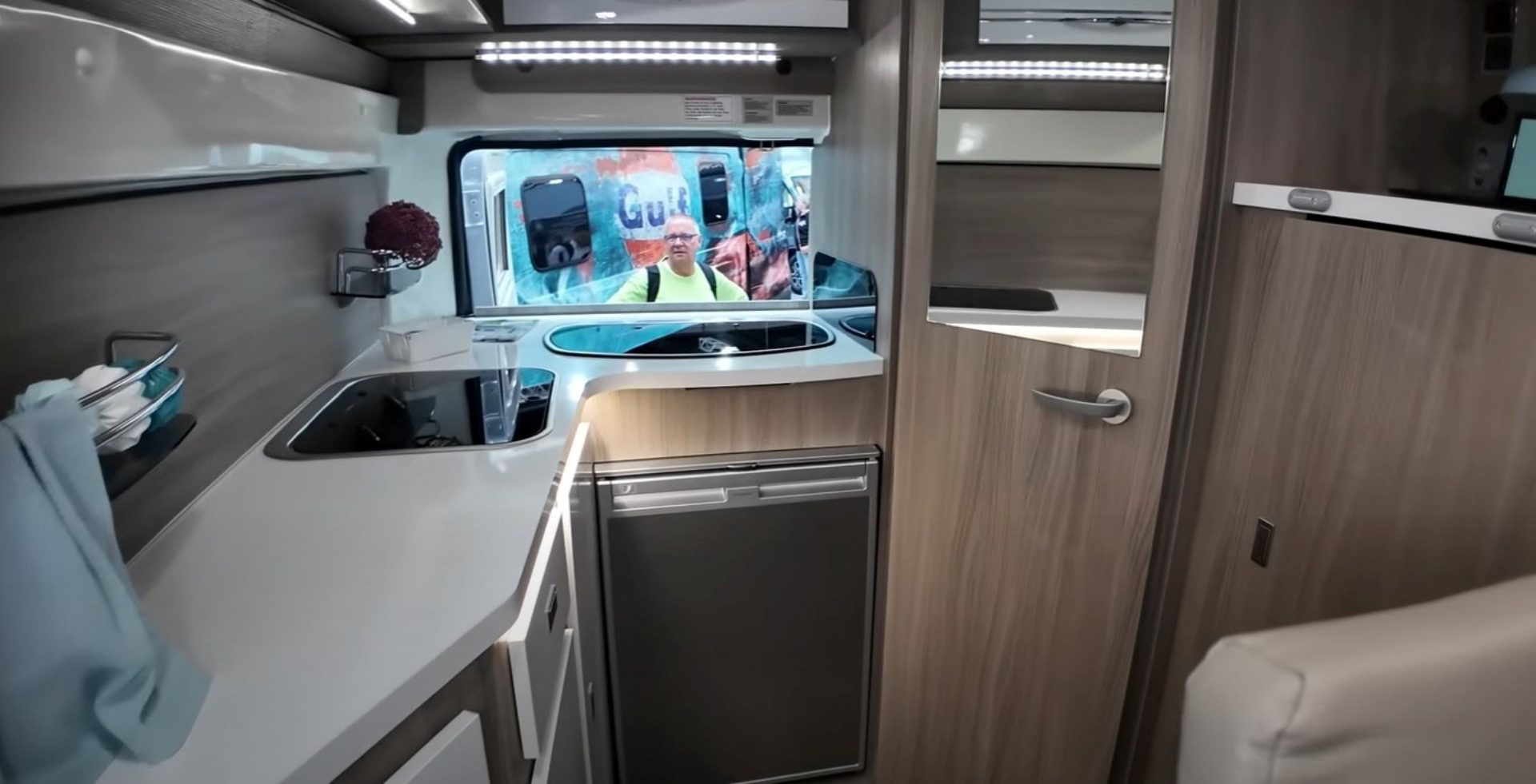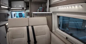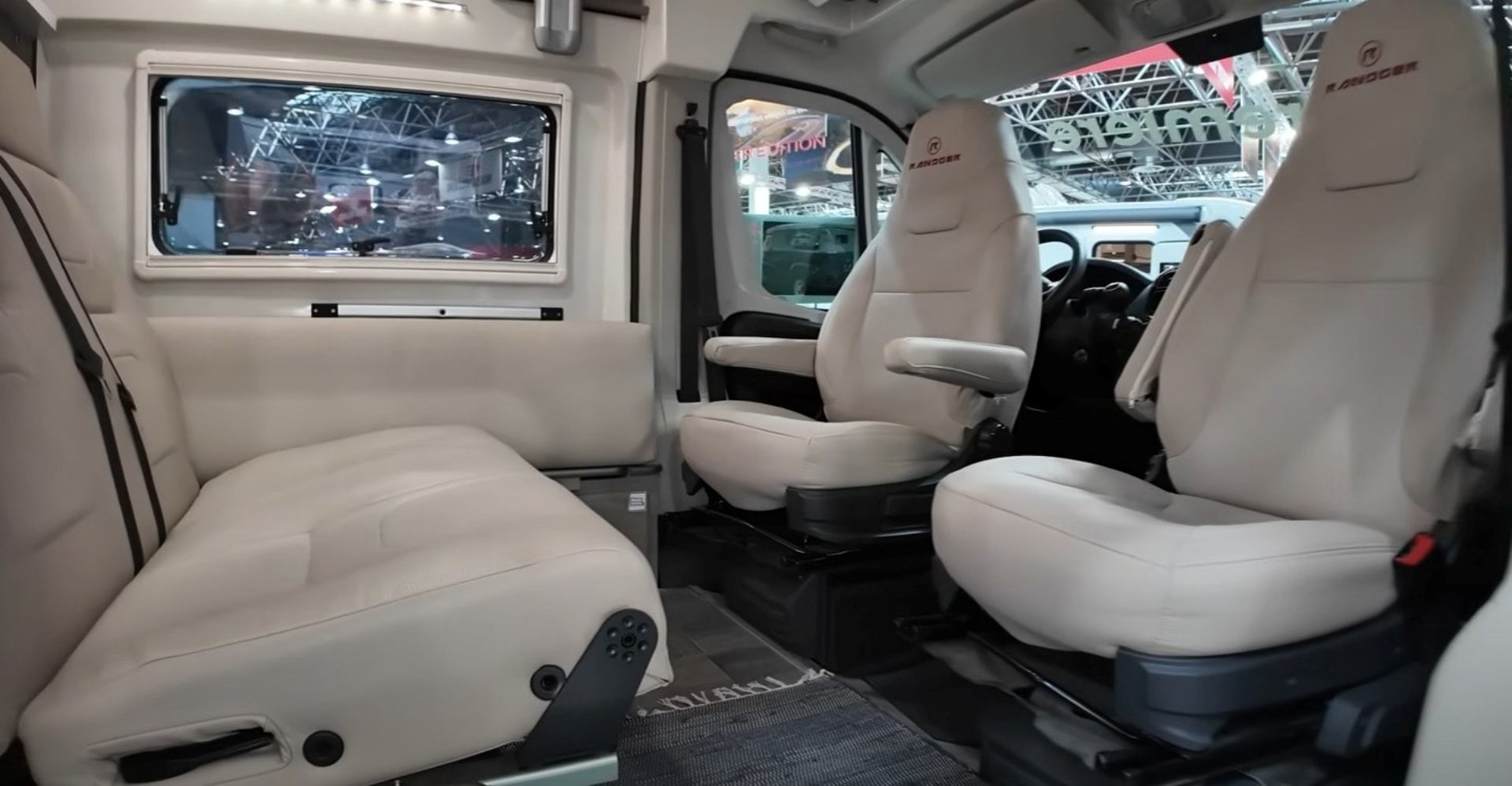 El interior encontramos el habitual despliegue de medios en una camper de 2025. Disponible tanto en versión autocaravana (denominada Motorhome), como en versión furgón (Camper Van) de carrocería larga o corta con techo elevable o fijo, encontramos línea modernas que evocan minimalismo y un espacio que dependerá de la variante elegida.