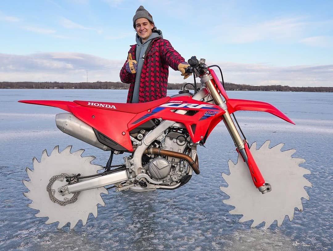 Has leído bien, estos chicos han puesto unos discos de corte circulares de 45kg a su Honda CRF250R y el resultado es peligroso, a la par que excitante.