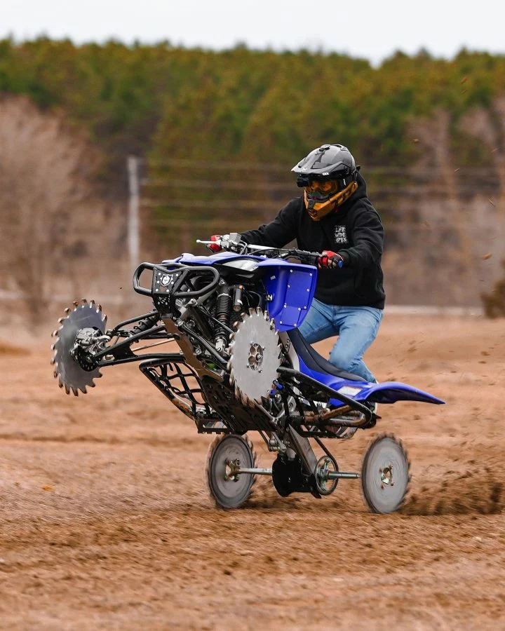 Has leído bien, estos chicos han puesto unos discos de corte circulares de 45kg a su Honda CRF250R y el resultado es peligroso, a la par que excitante.