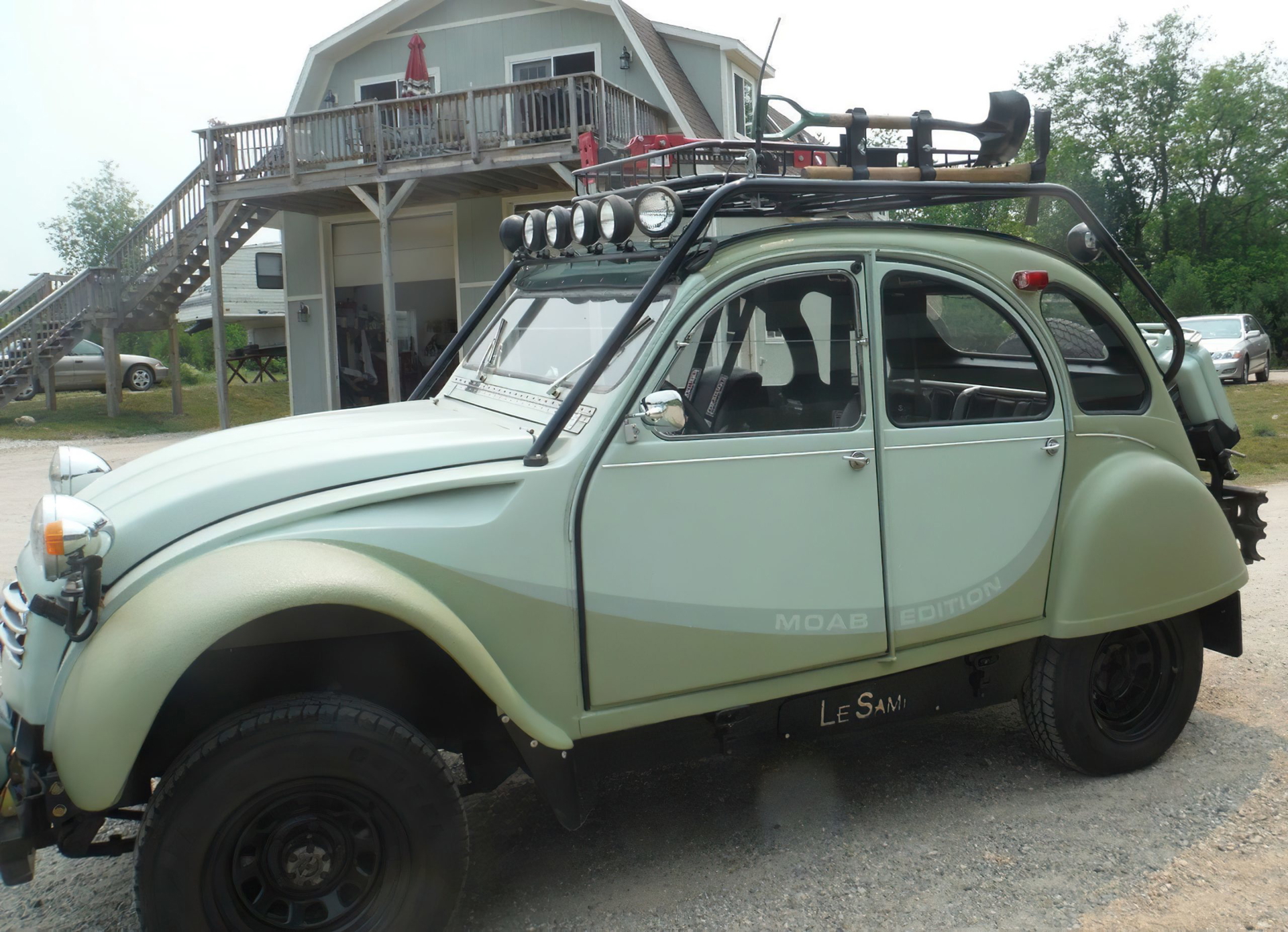 Su creador, un tipo apasionado de los coches (no podía ser de otra manera), agarró un Citroën 2CV de 1968. Como la carrocería era en lo que mejor estado se encontraba, la desmontó, la ensanchó 20cm y la plantó sobre el chasis de un Suzuki Samurai que, tras ser alargado 38cm, se conjugó perfectamente con la carrocería francesa.