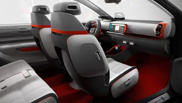 A bordo, también salta a la vista la influencia que ha tenido el diseño moderno de Citroën, iniciado por el propio Cactus. Hay que comprender que es un prototipo, de momento, pero es interesante cómo Citroën sigue apoyando la idea de reducir el número de botones y de sustituir las interfaces analógicas por pantallas, o incluso superficies transparentes que muestren información a modo de Head-Up Display. Una solución que, además de dar una imagen tecnológica, es económica con el abaratamiento de este tipo de sistemas.