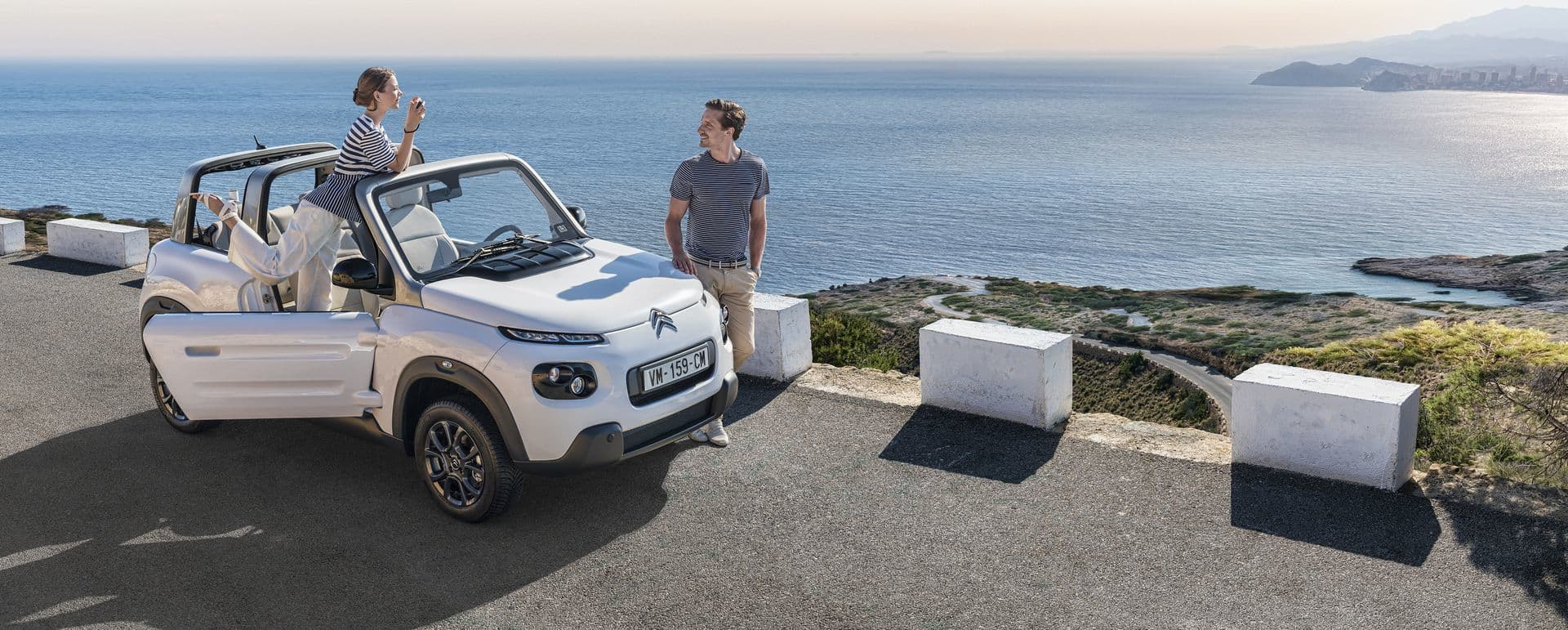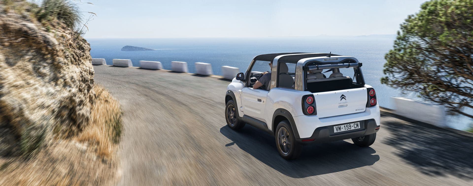 Conserva su motor eléctrico de 68 CV, que recibe un incremento de un 20% en su par máximo, que alcanza ahora los 166 Nm. Con su batería de polímeros de litio de 30 kWh de capacidad, tiene una autonomía de 195 km según el ciclo NEDC, suficiente para un uso eminentemente urbano. Con todo, su velocidad máxima es cifrada en 110 km/h, por lo que el E-Mehari no teme a las vías rápidas. De serie equipa neumáticos Michelin Cross Climate, con los que unido a una altura libre al suelo muy correcta, puede aventurarse por caminos y pistas sin dificultad alguna.