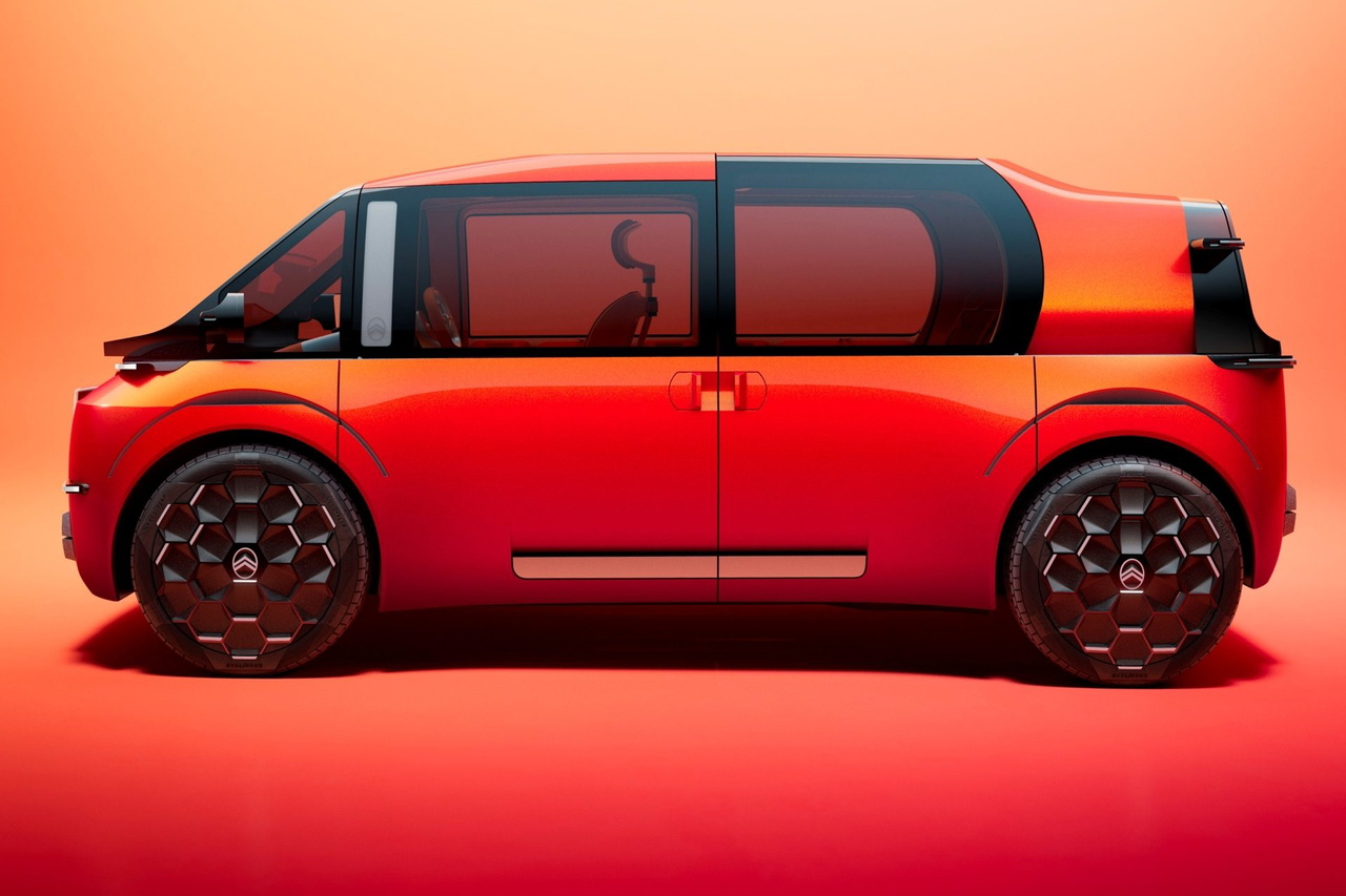 Las ruedas situadas en los extremos de la carrocería permiten aprovechar cada centímetro en el interior, mientras que las puertas sin pilar central dejan un hueco de acceso de 1,92 metros, prácticamente como entrar en una pequeña sala móvil. La zaga adopta un portón de dos hojas asimétricas inspirado en vehículos comerciales, otra guiño a la tradición de Citroën. El paragolpes delantero y el trasero son idénticos y están fabricados en polipropileno expandido, una solución que se repite en los guardabarros, donde incluso se han creado zonas planas para apoyar objetos durante actividades al aire libre. Como remate, el techo incluye un módulo tipo “jirafa”, capaz de abrirse para transportar objetos largos o simplemente para mirar el cielo en un día despejado.
