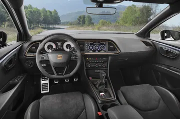 No podemos obviar que la diferencia de precio del Cupra R con respecto al Cupra «normal» es cuanto menos importante metiéndose en terreno de Golf R, aún así SEAT Sport asegura cambios lo suficientemente importantes como para convencer: aerodinámica revisada con un 12’5% de carga aerodinámica extra, neumáticos Michelin Pilot Sport Cup 2 sobre llanta de 19″, suspensiones y geometrías revisadas, equipo de frenos Brembo mejorada con discos de 370mm (+30 mm sobre el Cupra), diferencial mecánica VAQ (Haldex), etc.