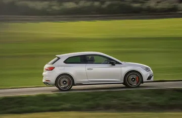 El SEAT León Cupra ha cambiado mucho en sus 3 generaciones, sin embargo sigue arrastrando el «complejo» de ser la opción más económica de entre los compactos del Grupo VAG y en muchas ocasiones ha visto limitado su potencial por el miedo a la canibalización. Pero en esta tercera generación no sólo el SEAT León ha dado un sonoro y contundente puñetazo sobre la mesa, sino que su versión Cupra ha seguido los mismos pasos alcanzando una madurez que, ahora más que nunca, lo convierten en una muy seria alternativa a los Volkswagen Golf R y Audi S3. La receta del León Cupra parte de un bloque 2.0 TSI de 300 CV y 380 Nm, con posibilidad de cambio manual de 6 relaciones o DSG de también 6 relaciones, tracción delantera con diferencial VAQ y una puesta a punto más «racing» que la de sus primos no tan lejanos (0-100 Km/h en 5,6s y 250 Km/h).