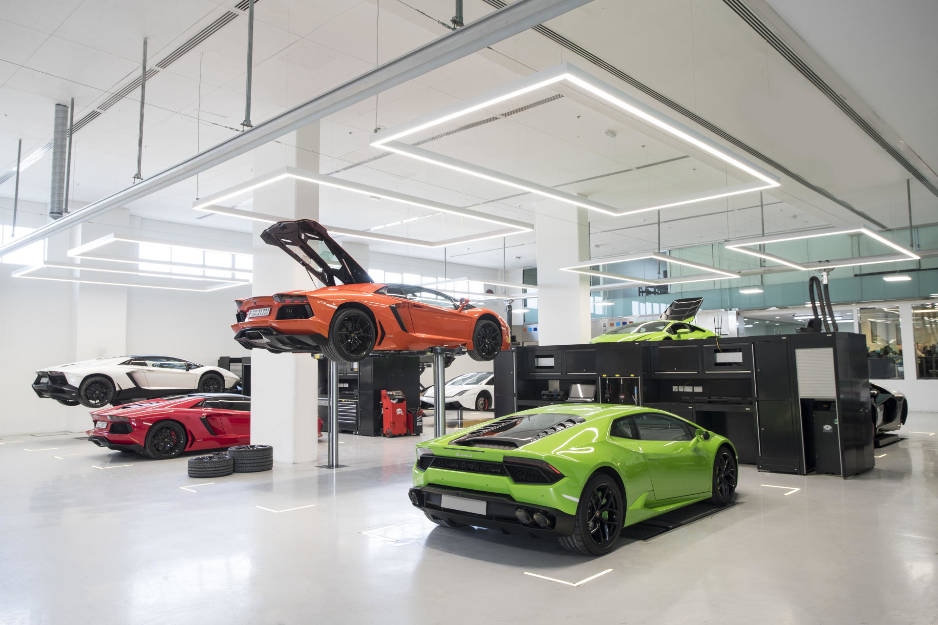 Este centro Lamborghini de 1.800 metros cuadrados, distribuidos en tres plantas entre la sala de exposición y el taller, es un fiel reflejo ya no sólo del superventas que se avecina, sino también de la importancia de este mercado para la marca y el aún más relevante papel que puede llegar a jugar este mercado si el Lamborghini Urus entra con buen pie en Oriente Medio.