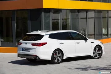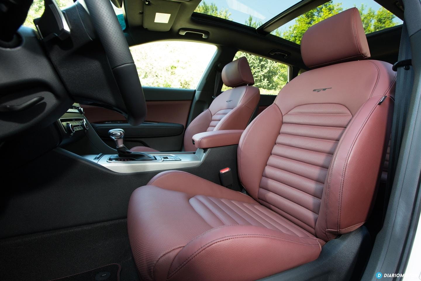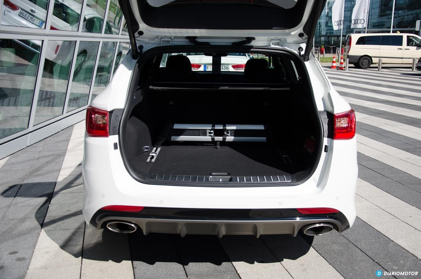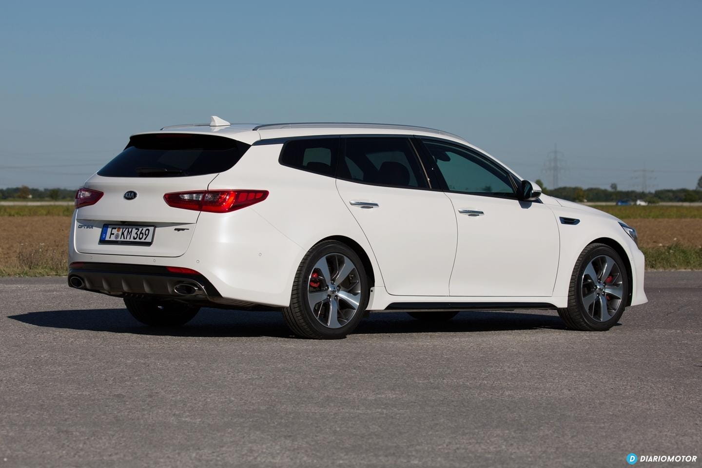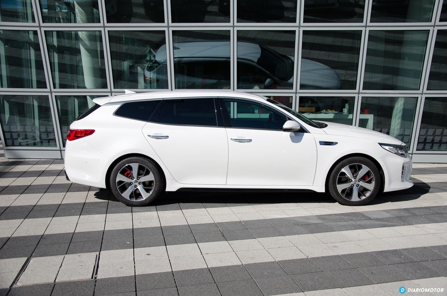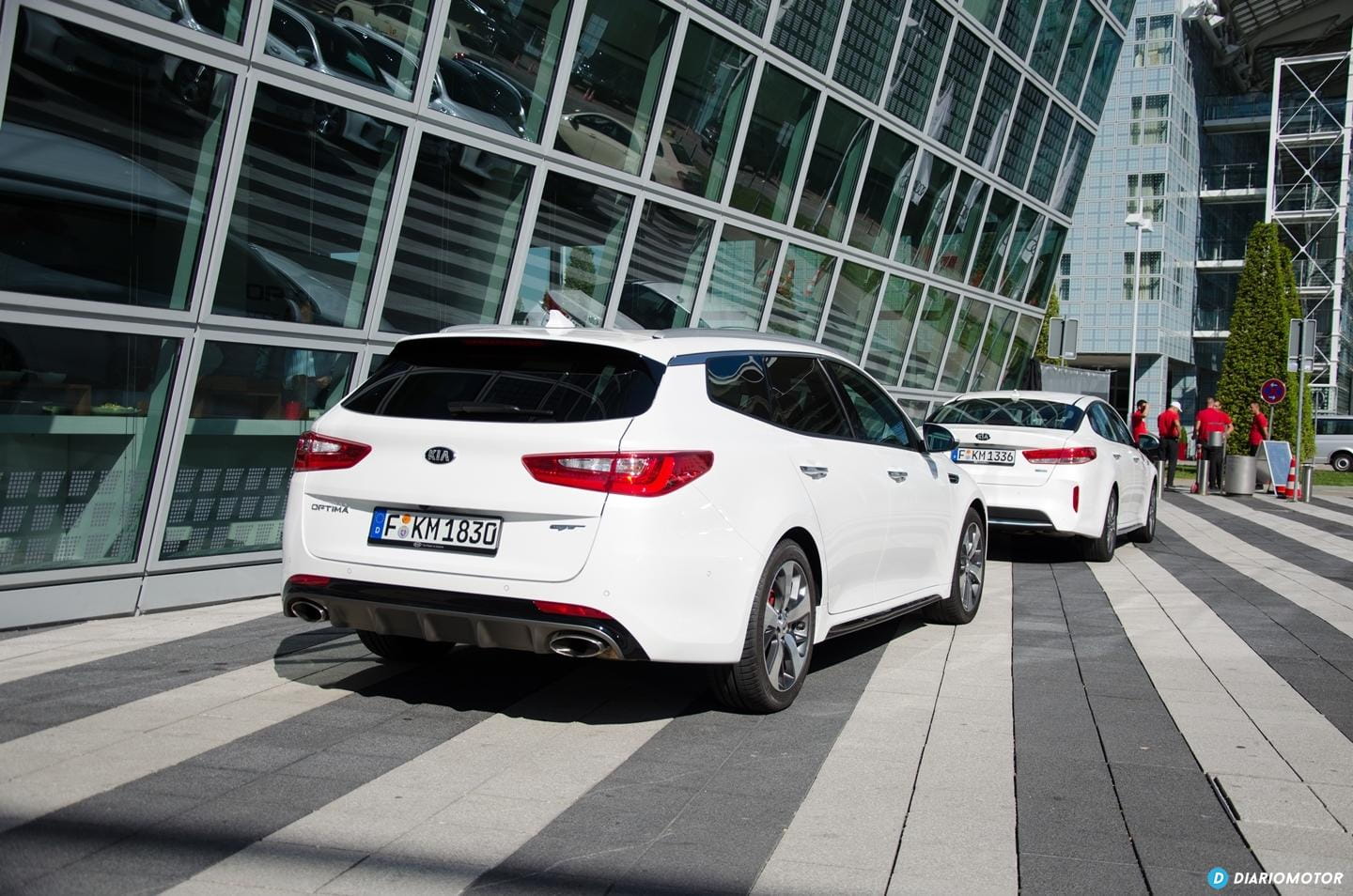 El primer modelo que cae en nuestras manos es un Kia Optima Sportswagon en acabado GT que se convierte en el acabado y motorización tope de gama de esta generación. Estamos ante un motor 2.0 Turbo de 245 CV y 353 Nm de par, asociado a un cambio automático de doble embrague con 7 relaciones y con un chasis puesto a punto de forma específica para esta variante con elementos como frenos más grandes, suspensión activa con perfiles de conducción y una dirección recalibrada. Estamos por lo tanto ante un Kia Optima bastante diferenciado del resto de versiones en cuanto al aspecto técnico, algo que se hace notar desde los primeros kilómetros en los que nos encontramos con una berlina rápida que brilla por su estabilidad. Gracias a la posibilidad de circular sin límite de velocidad por las Autobahn alemanas durante esta presentación, pudimos comprobar en primera persona cómo este familiar de corte deportivo es capaz de circular a velocidades sostenidas de 200 Km/h sin merma en el confort y con gran aplomo.
