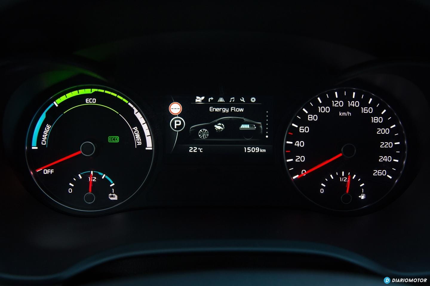 Como función interesante, el Kia Optima PHEV estrena el sistema Coasting Guide Control que se sirve del sistema de navegación para asesorar al conductor durante la conducción guiada y así indicarle cuando avanzar simplemente con la inercia del vehículo aprovechando la orografía del terreno. Este sistema, junto con los diferentes modos de regeneración y los perfiles de conducción nos permitieron alcanzar una autonomía de 46 kilómetros en modo 100% eléctrico.