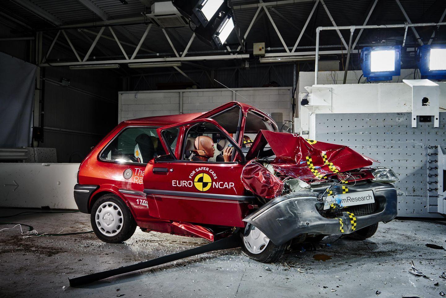 Las primeras pruebas Euro NCAP tuvieron lugar en 1997, y en ellas se analizaron siete utilitarios superventas: los Ford Fiesta, Opel Corsa, Fiat Punto, Renault Clio, Volkswagen Polo, Nissan Micra y Rover 100. Del máximo de cuatro estrellas, sólo los Polo y Fiesta obtuvieron tres de cuatro estrellas – entonces el máximo – en protección a los ocupantes. Los Punto, Clio, Micra y Corsa se conformaban con dos estrellas, y el Rover 100 literalmente se estrellaba, con una sola estrella. Los resultados en protección a los peatones aún fueron peores.