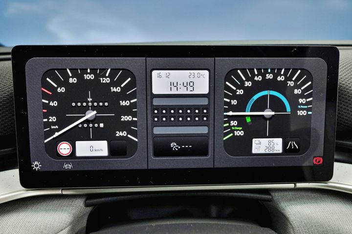 Evidentemente, no es analógico como tal, sino una recreación digital en el cuadro de instrumentos. De manera normal, tendremos un moderno cuadro digital, pero pulsando un botón en el volante (o en el sistema multimedia), las pantallas digitales se transforman en relojes clásicos que recuerdan al Golf Mk1 de los años 80.