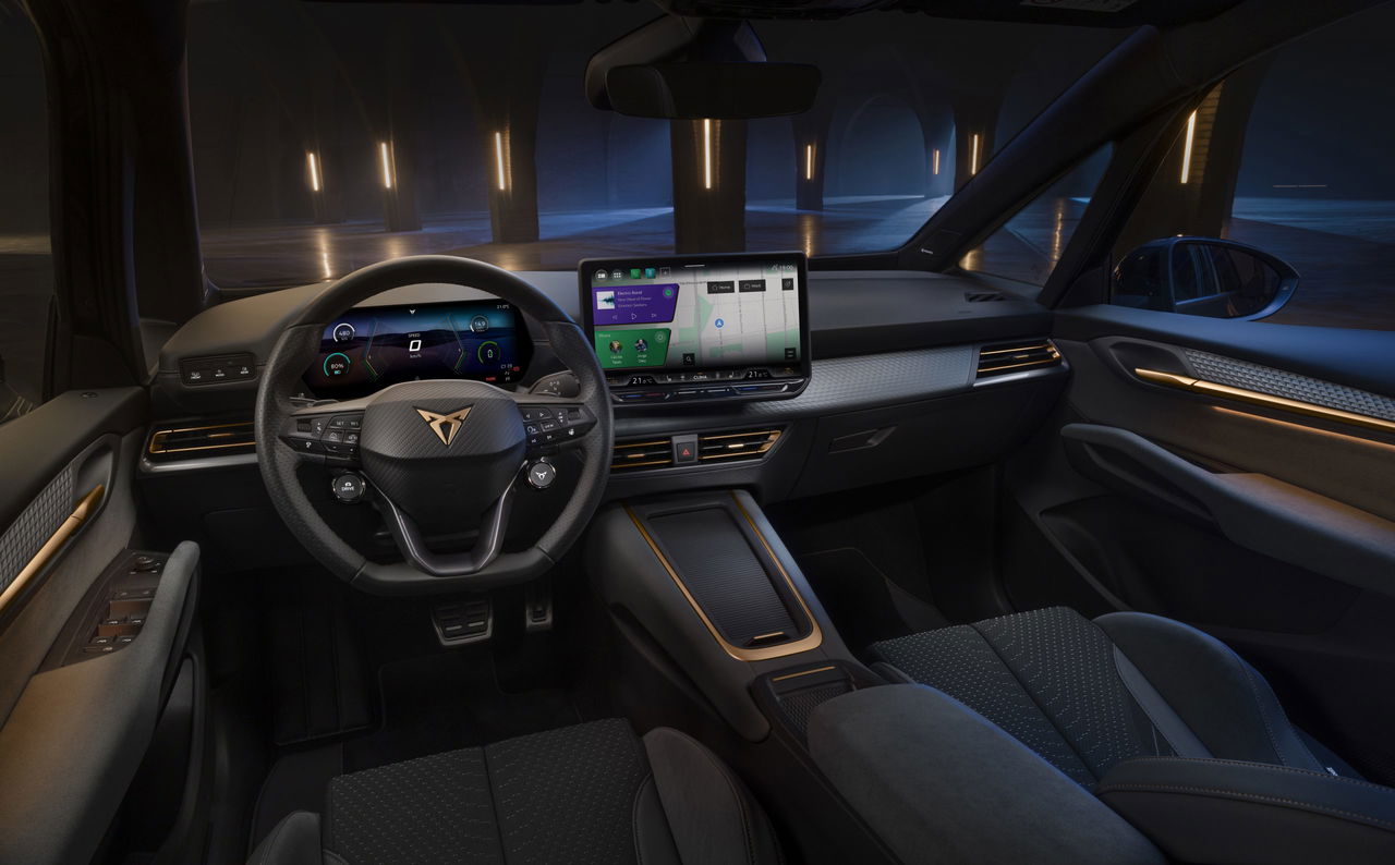 Se ha incrementado la calidad de los revestimientos y ajustes – que ya eran claramente superiores a los del Volkswagen ID.3 – y se han rediseñado en profundidad los paneles de las puertas, tanto delanteras como traseras. Por fortuna, las mentes claras han imperado y se han incluido cuatro mandos para los elevalunas eléctricos. Gracias, CUPRA. La instrumentación digital crece desde las 5,3 hasta las 10,25 pulgadas, con mucha mas información, y la pantalla central del coche, de 12,9 pulgadas, estrena sistema operativo.