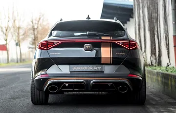 En este momento es cuando entra en escena Manhart, un preparador alemán especializado en vehículos del Grupo Volkswagen, así como en BMW. Manhart ha desarrollado el paquete CP 500 para el CUPRA Formentor VZ5, elevando su potencia hasta unos tremendos 490 CV – acompañados de 630 Nm de par motor – logrando por el camino prestaciones más propias de un superdeportivo. El incremento de potencia se debe casi exclusivamente a un componente llamado MHtonik Powerbox, que contiene una reprogramación para la centralita electrónica del motor.
