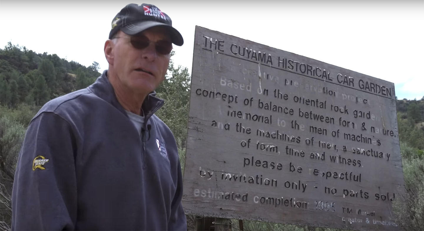 La magnitud del hallazgo podría llevarnos a pensar que se trata de un antiguo desguace. Pero no es así. A la entrada del recinto los visitantes se encuentran con un cartel en el que reza The Cuyama Historical Car Garden. Y nos habla de la historia de un artista, descendiente de fabricantes de automóviles, que decidió crear una obra de arte reinterpretando, de alguna forma, la idea del jardín Zen de las culturas asiáticas, buscando el balance entre la tecnología y la naturaleza acumulando automóviles en medio del campo. Aunque un vistazo inicial también nos podría llevar a pensar que se tratase de un coleccionista de coches con síndrome de Diógenes.