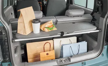 Está cargado de detalles como una bandeja sobre el maletero que se convierte en mesita, enganches para redes de contención, espacios para botellas, bolsas de la compra, teléfonos y hasta unas zapatillas de recambio bajo el asiento.