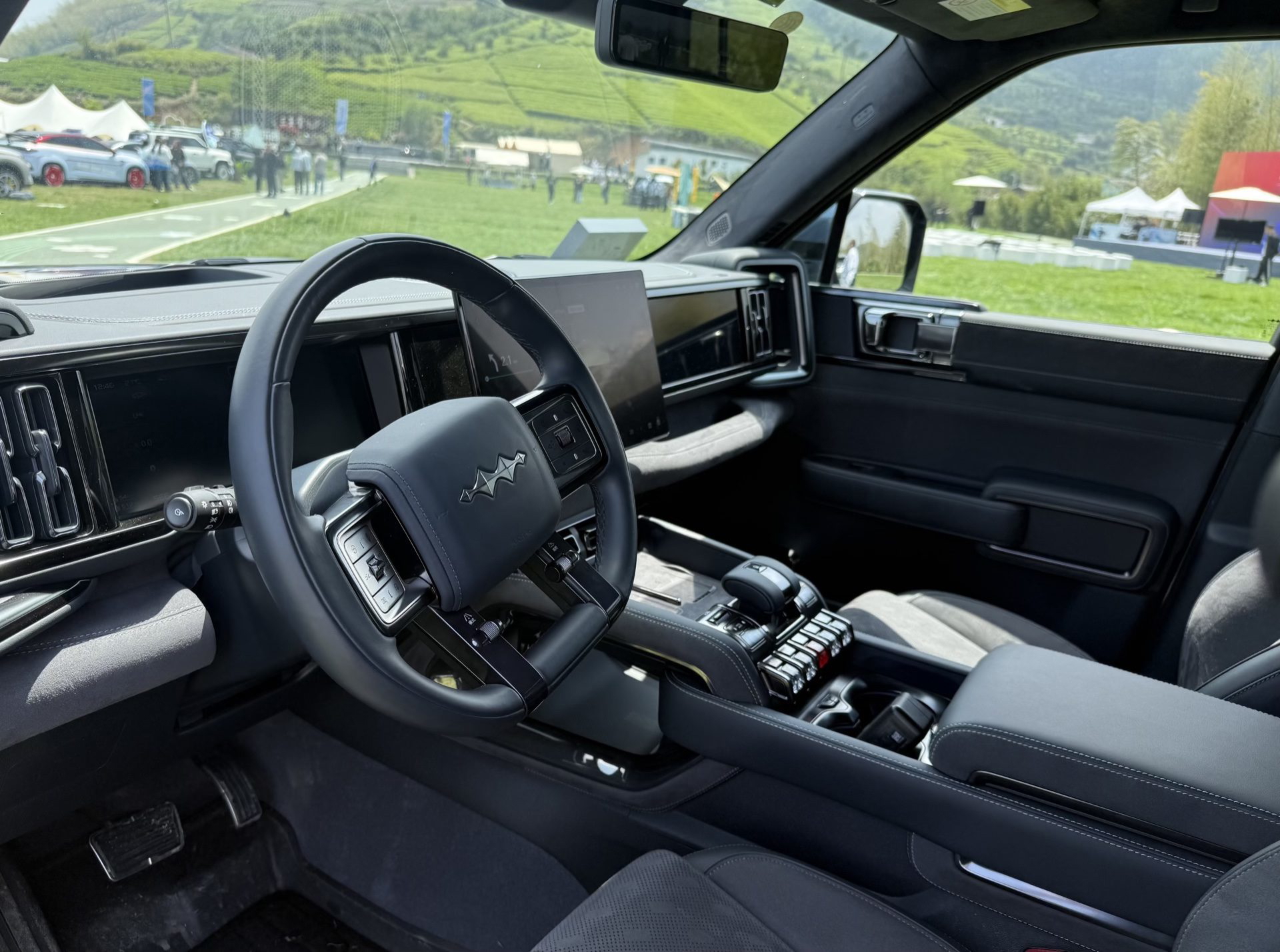 Este todoterreno no emplea un sistema de tracción total al uso, con un eje de transmisión central. El fabricante chino ha preferido ahorrar peso – pero sobre todo espacio – prescindiendo de un eje de transmisión central. En su lugar, emplea un sistema de tracción total eléctrico, en el que el eje trasero se impulsa únicamente gracias a la acción de los motores eléctricos de que dispone.