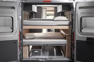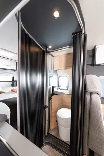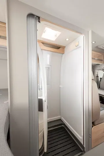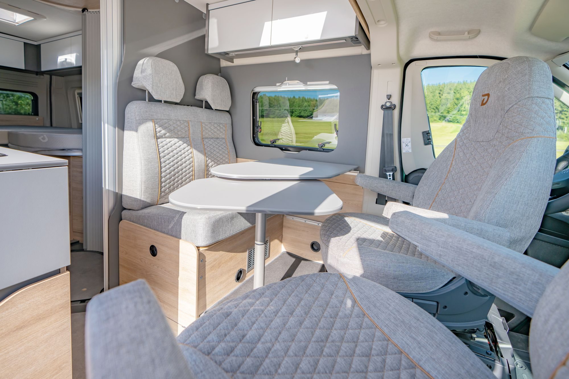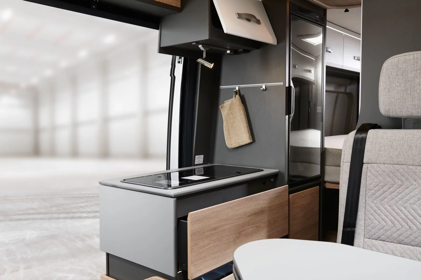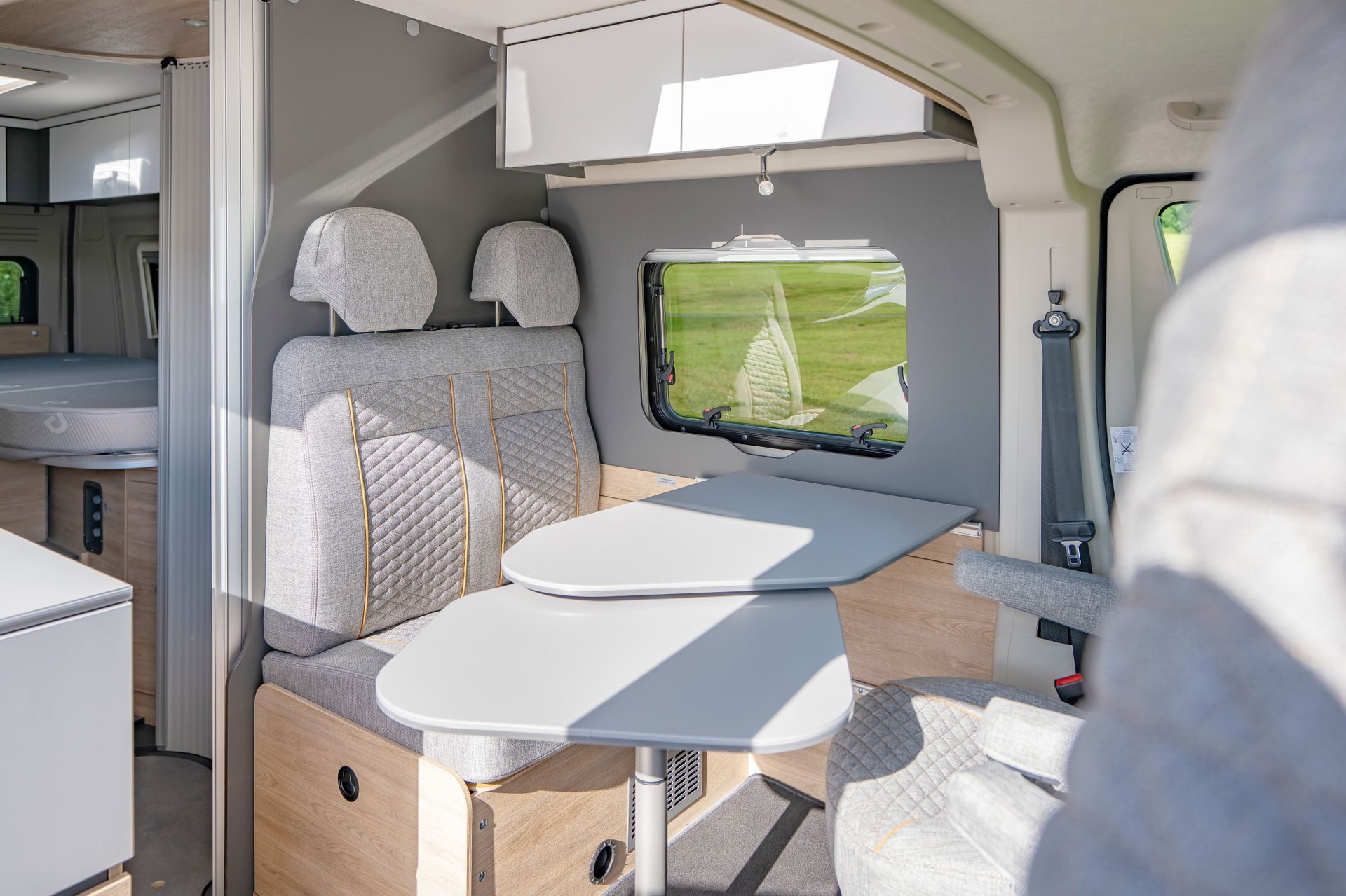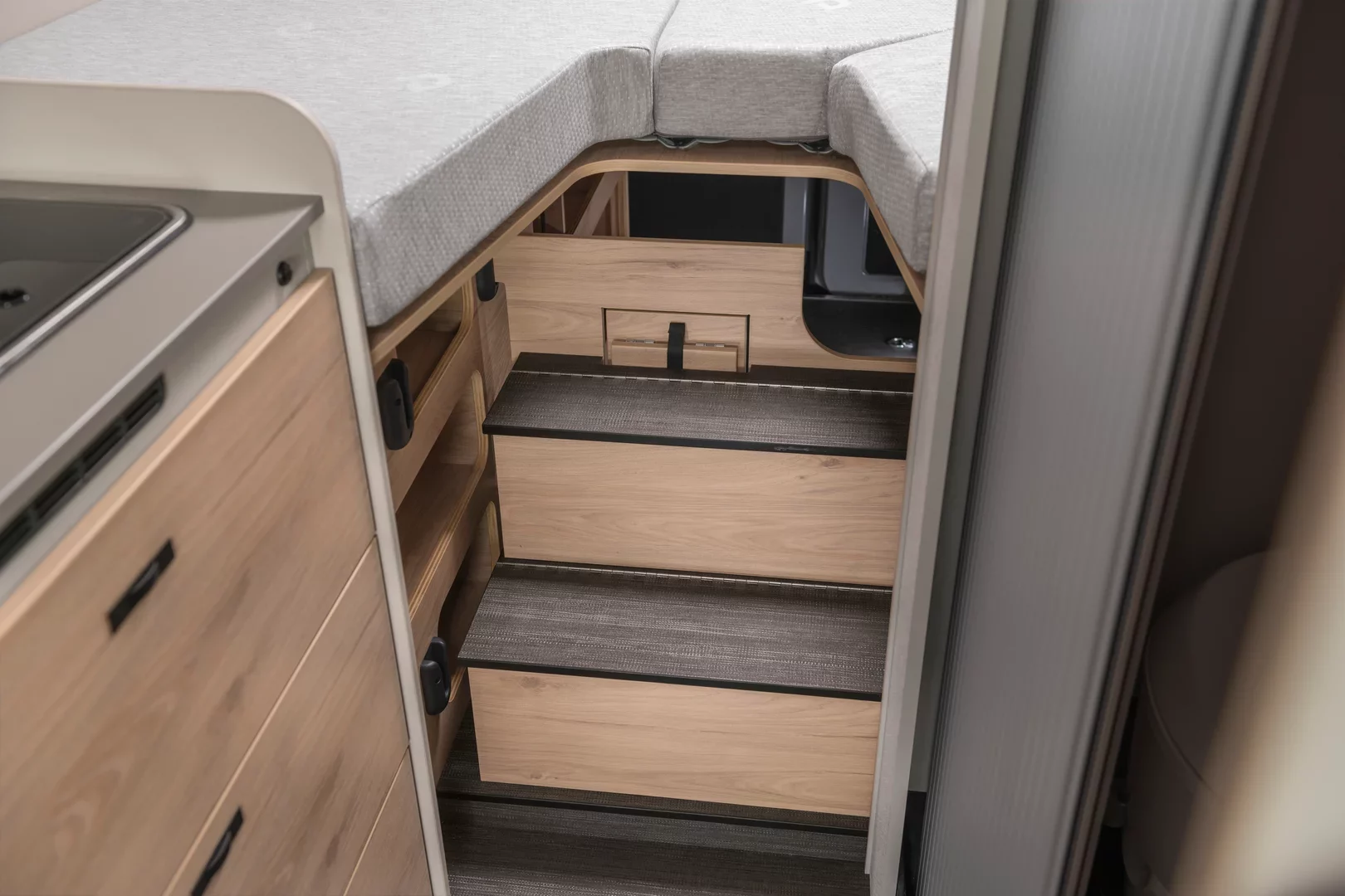 También en la dotación de serie se encuentran el climatizador automático, sistema multimedia con pantalla de 10 pulgadas con radio DAB, navegador, Apple CarPlay, Android Auto, bluetooth, puerto USB, volante multifunción forrado en piel, cámara de visión posterior, cargador de móvil por inducción, instrumentación digital configurable, pack LED interior, preparación para placa solar, panel de control Truma CP Plus, mosquitera en puerta deslizante, oscurecedores en ventanas, etc.