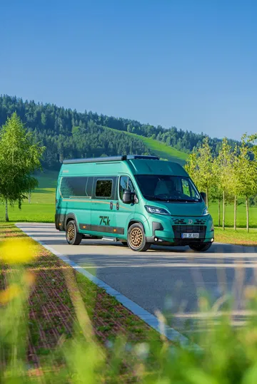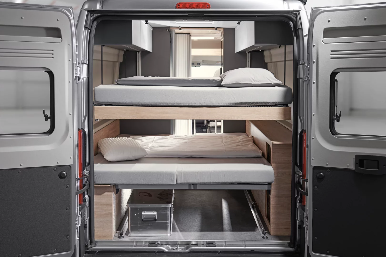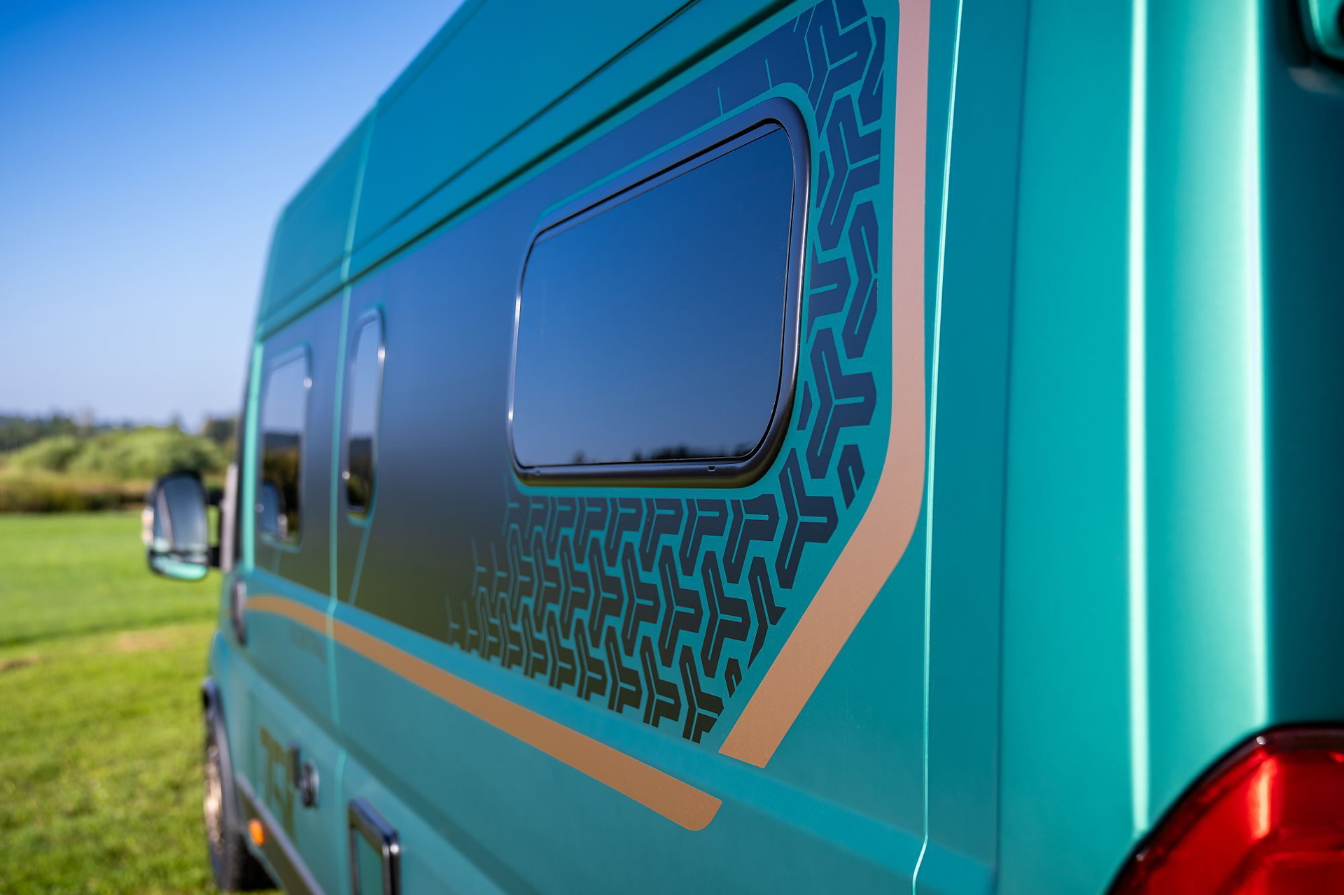 La plataforma empleada para el desarrollo de la nueva edición especial es la del Fiat Ducato de octava generación. Han añadido en el diseño exterior unas llamativas llantas de aleación Borbet de 18 pulgadas con neumáticos M+S y un generoso toldo pintado en negro que te permitirá disfrutar el máximo tiempo posible al aire libre. Otro elemento de serie es el escalón de acceso eléctrico.