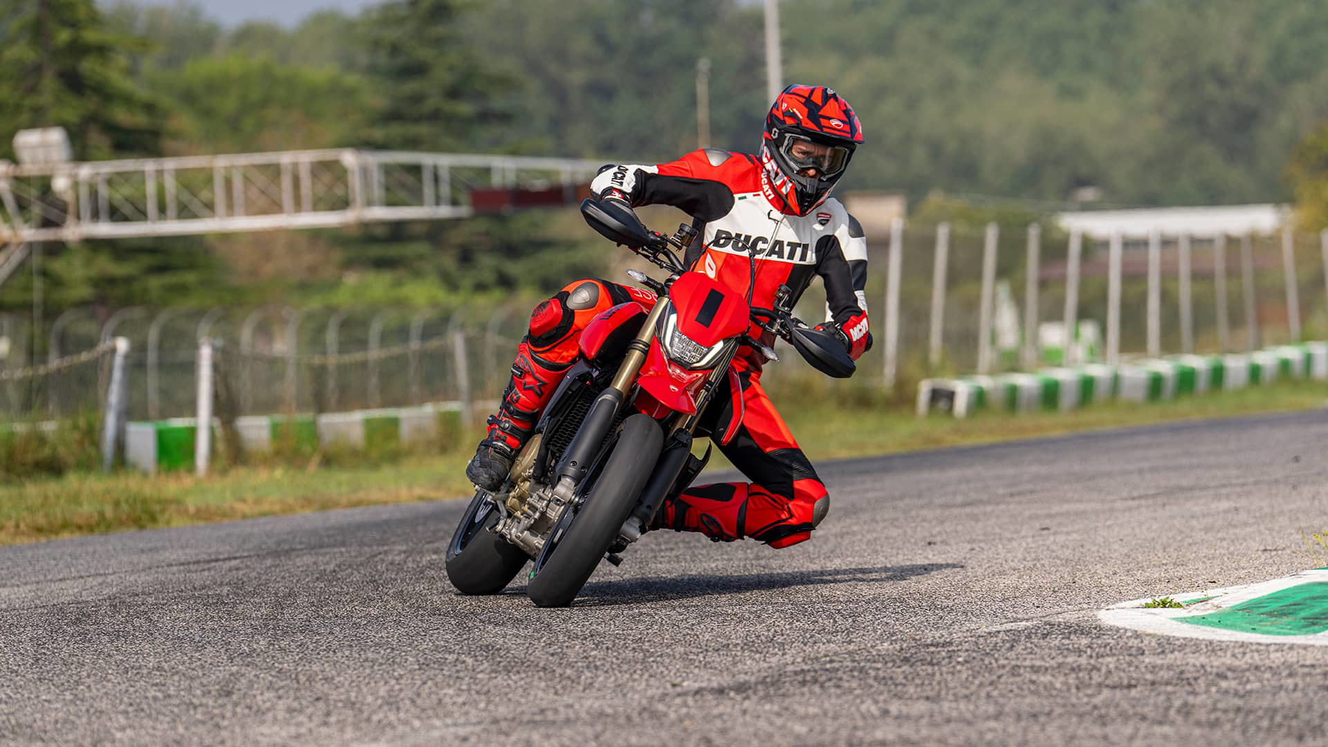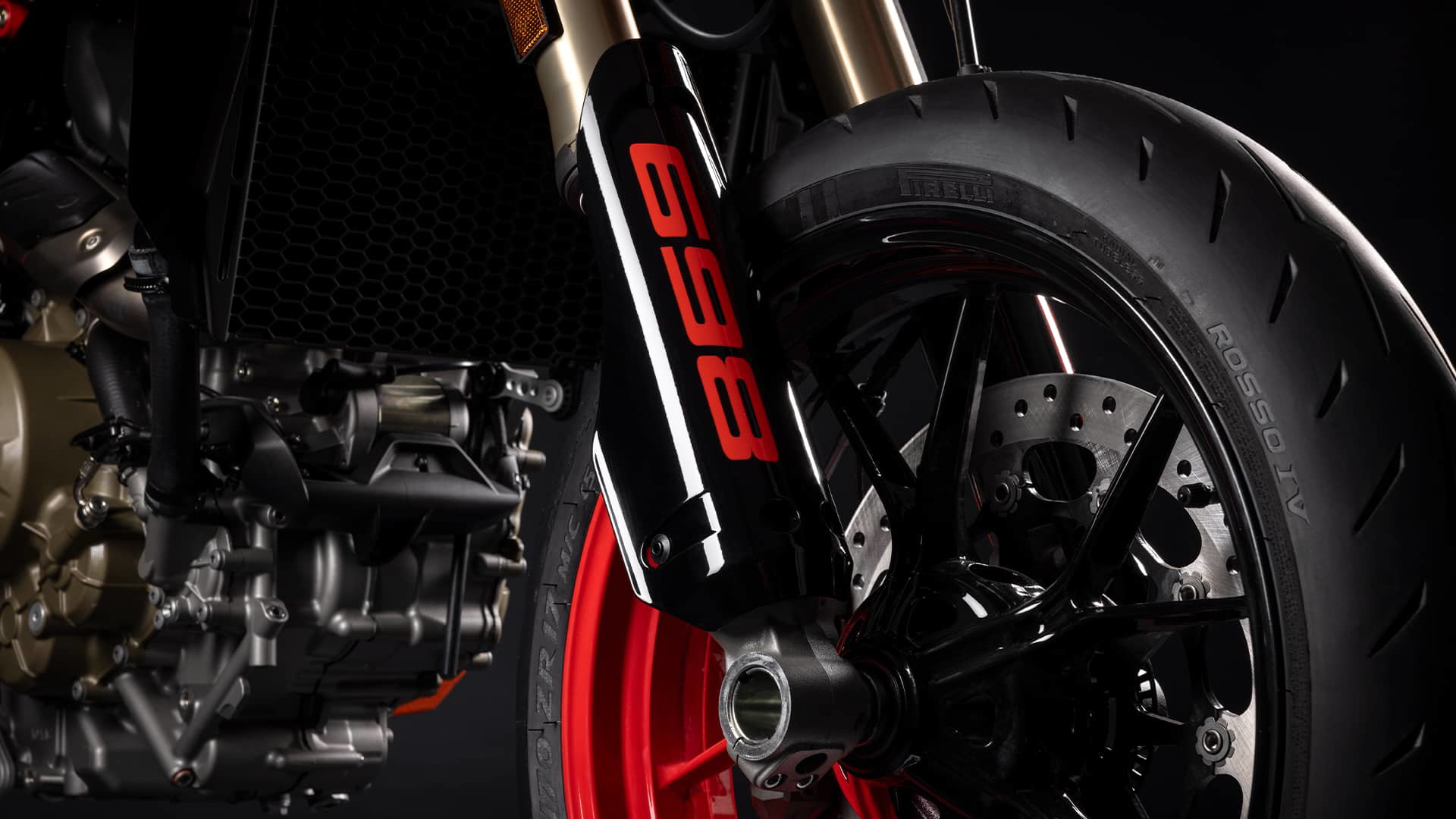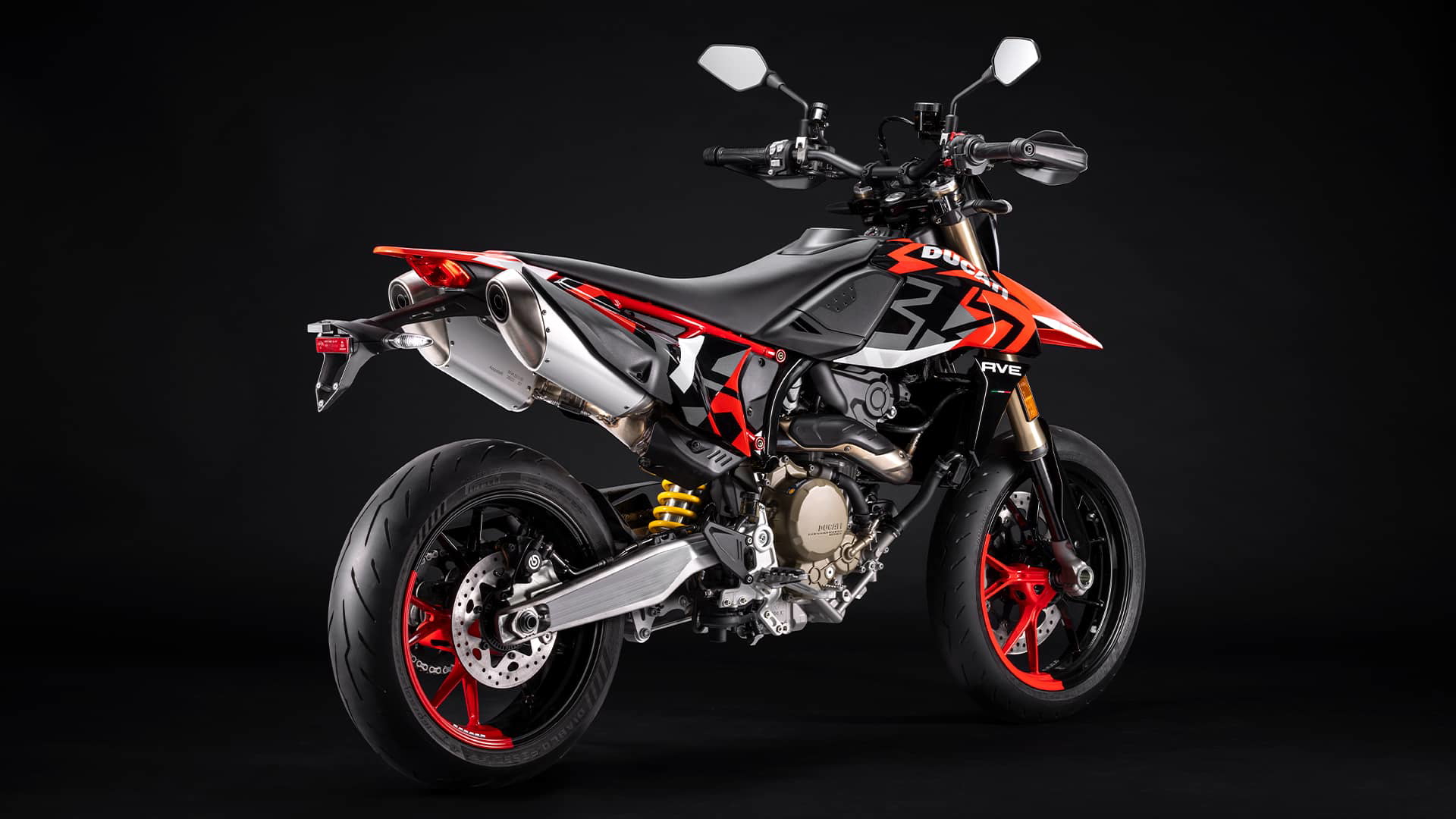Ambas llantas son de 17 pulgadas y aleación ligera, calzadas con neumáticos Pirelli Diablo Rosso IV. El equipo de frenado está compuesto por un disco delantero de 330 mm, abrazado por una pinza Brembo M4.32 de anclaje radial y cuatro pistones, mientras que la frenada trasera se confía a un disco de 245 mm. Pero el dato clave de esta moto está en su peso: en orden de marcha y sin combustible, solo pesa 151 kilos. Esta ligereza permite a la moto una agilidad y maniobrabilidad extremas, imposibles de replicar en cualquier máquina de su cubicaje que no sea una supermoto.