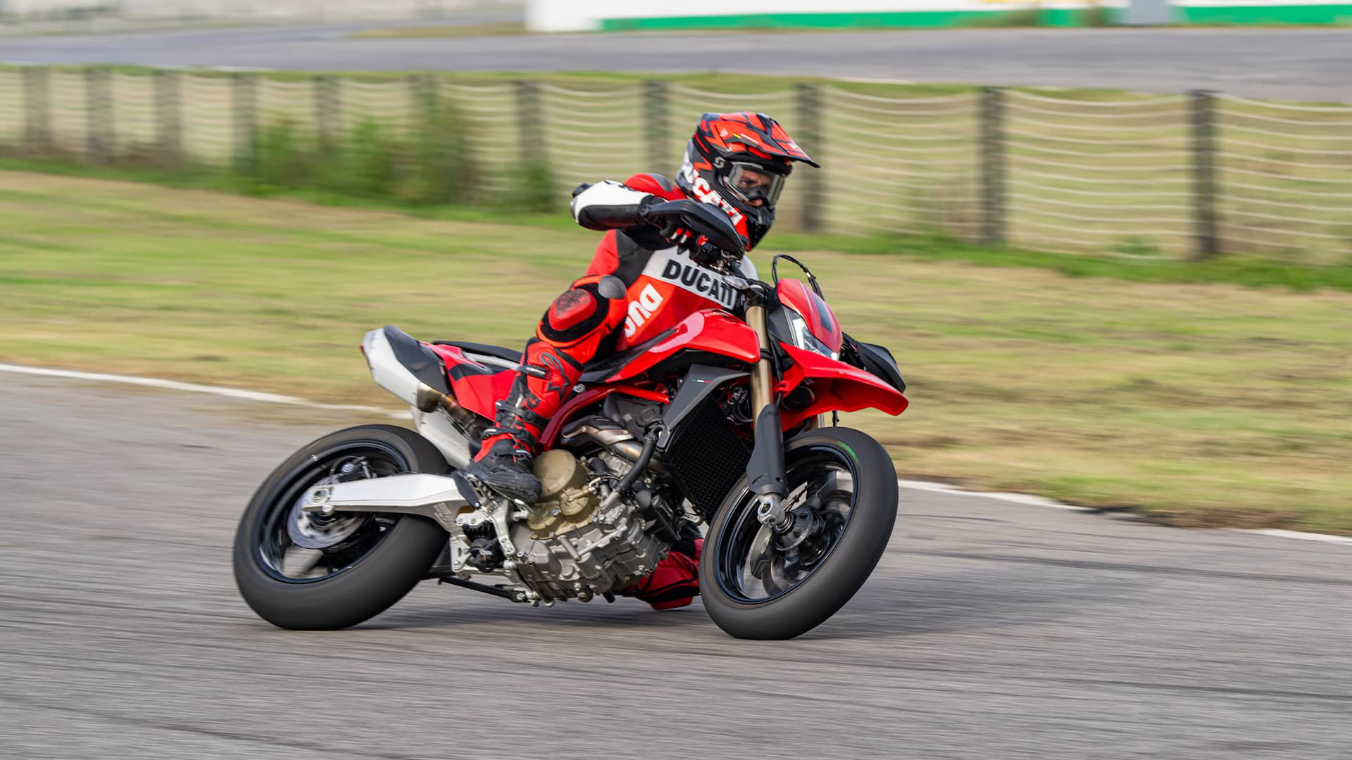 Su postura de pilotaje es alta, propia de una supermoto, con el asiento a 904 mm del suelo. El asiento está diseñado para que podemos movernos sobre él, algo imprescindible en este tipo de motos. La mecánica de esta Ducati es un monocilíndrico de nuevo desarrollo y carrera corta: a partir de 659 cc, con cuatro válvulas, refrigeración líquida y distribución desmodrómica, es capaz de desarrollar 77,5 CV a 9.750 rpm y un sano par motor de 63 Nm a 8.000 rpm. Para ser un monocilíndrico, hablamos de un motor con un régimen de giro muy elevado.