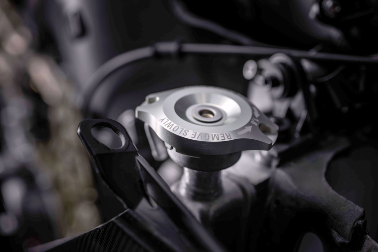 El kit de competición para uso en circuito incluye el escape de competición Akrapovič con el software DAVC Race Pro, un carenado inferior específico y protectores para la tapa del embrague, la palanca de freno, el basculante y el alternador, todos ellos fabricados en fibra de carbono.