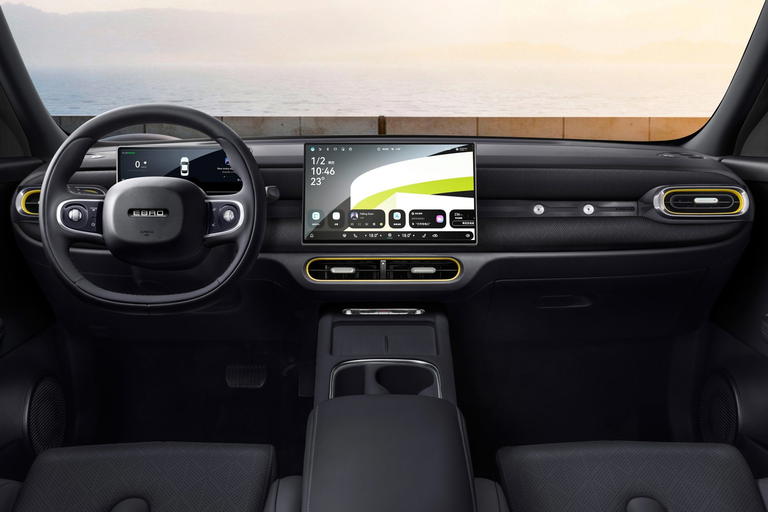En el habitáculo está comandado por una doble pantalla: una para el cuadro de instrumentos de 8,88 pulgadas y una pantalla central de 15,6 pulgadas cuyo sistema multimedia se apoya en una plataforma Qualcomm Snapdragon. Entre el equipamiento destacado, según ha dado a conocer EBRO, se incluyen volante multifunción, cargador inalámbrico ventilado de 50 W y climatizador bizona, entre otros.
