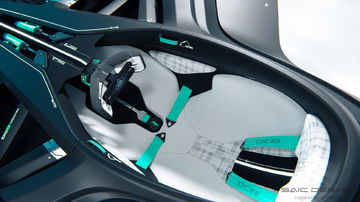 Esta misma parte trasera es capaz de ayudar a la hora de frenar, a modo de aerofreno como los que utilizan los aviones al detenerse una vez llegan a la pista de aterrizaje. Por dentro, el MG EXE181 lleva…un volante y una pantalla táctil. Poco más, teniendo en cuenta el espacio existente, no apto para claustrofóbicos (aún más incluso que en un monoplaza de competición al ser una cabina cerrada, como ocurre en prototipos como los del Mundial de Resistencia).