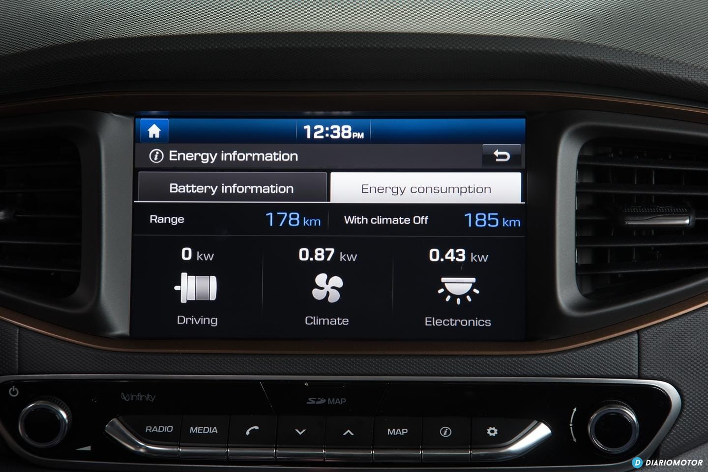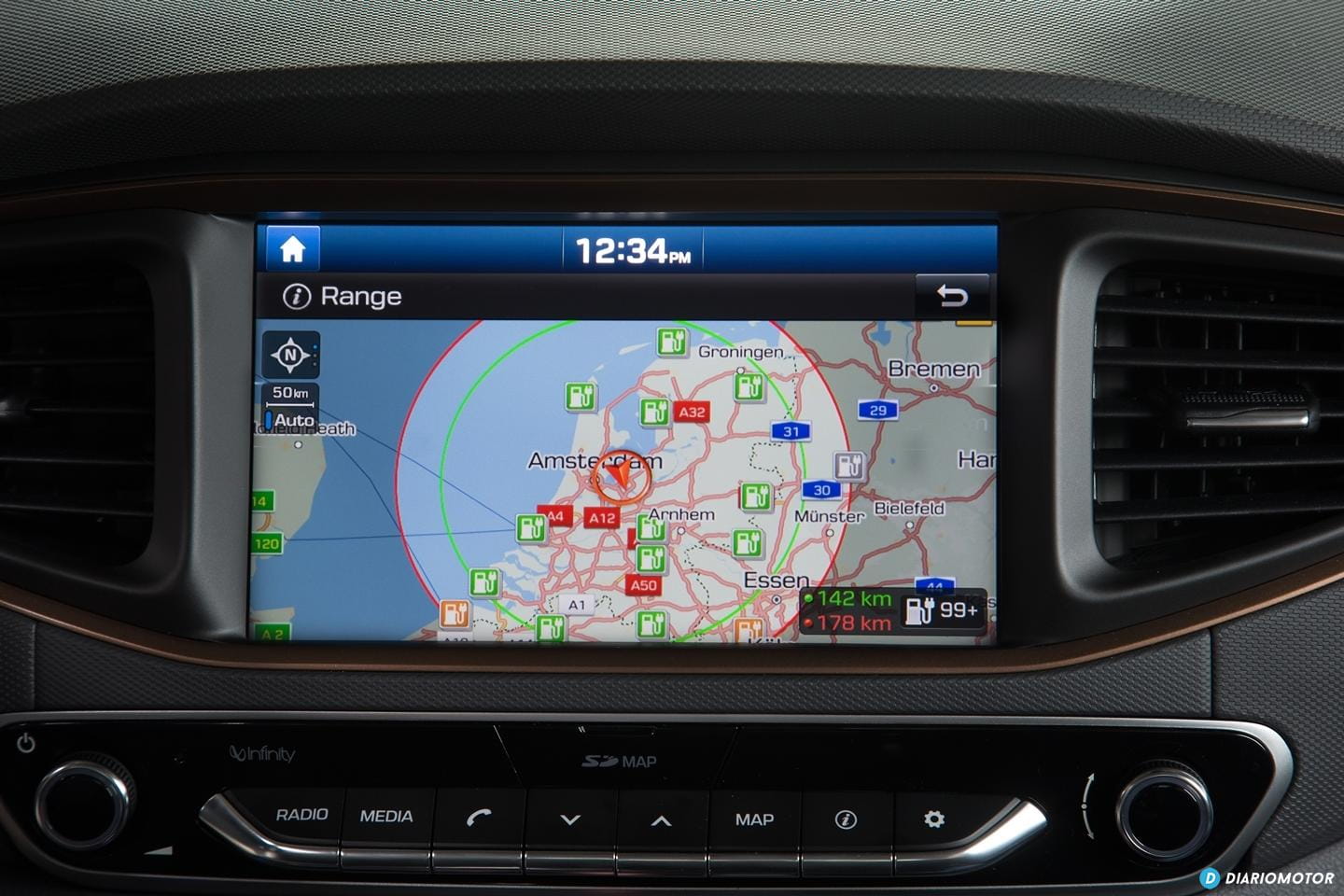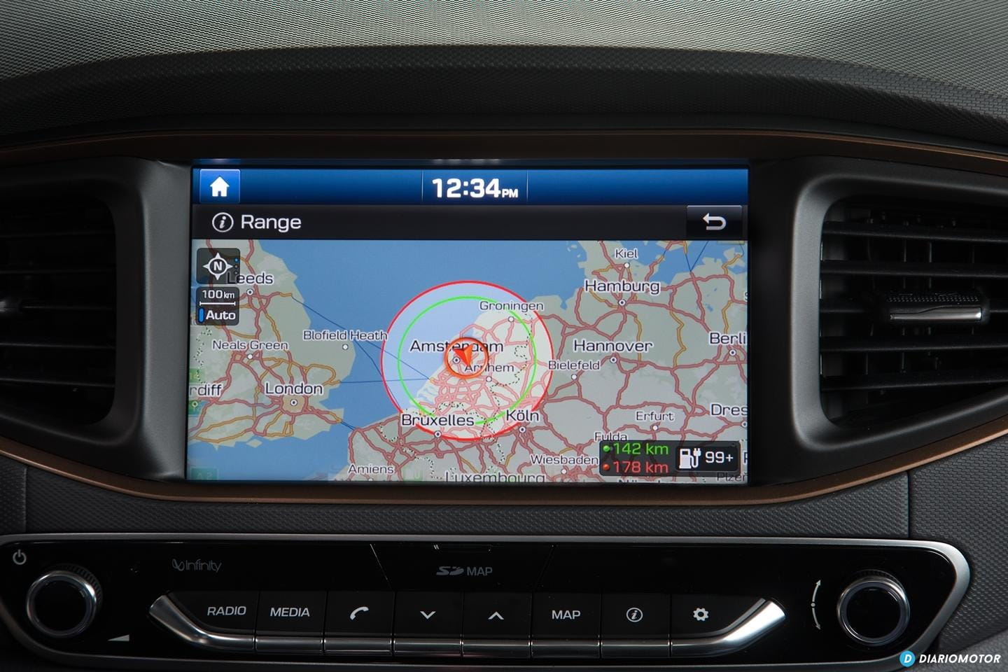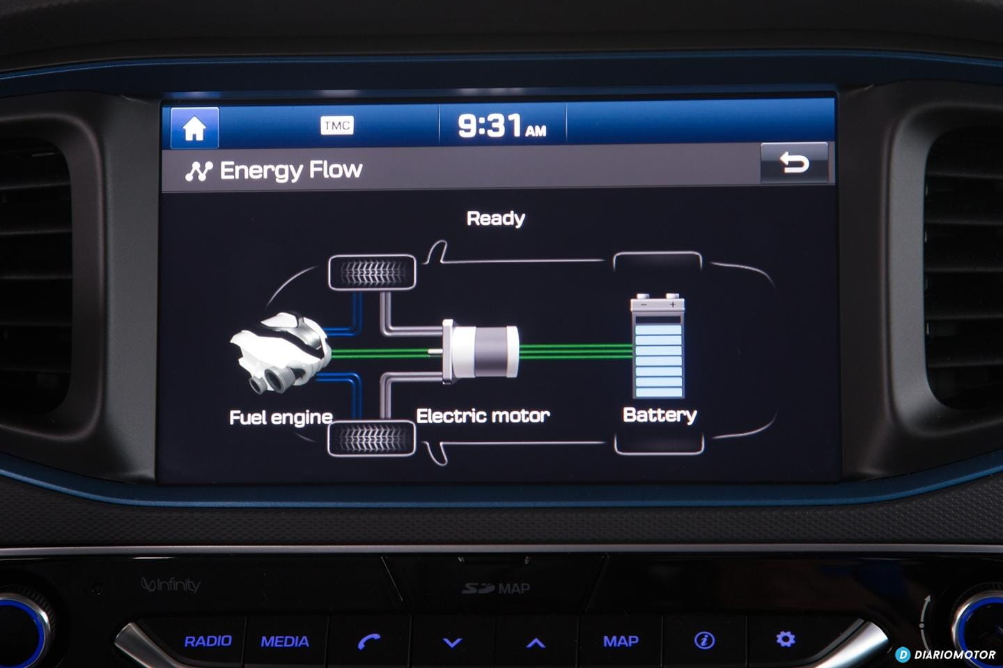 El grupo de propulsión híbrido del Hyundai Ioniq alcanza los 146 CV de potencia máxima combinada, gracias a un motor 1.6 GDI de 103 CV y un motor eléctrico de 43 CV unidos a través de un cambio de doble embrague que es su principal reclamo frente al más eficiente pero no tan aceptado eCVT de Toyota y Lexus. El consumo medio homologado del Hyundai Ioniq es de 3,4 l/100 Km.